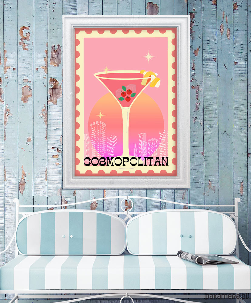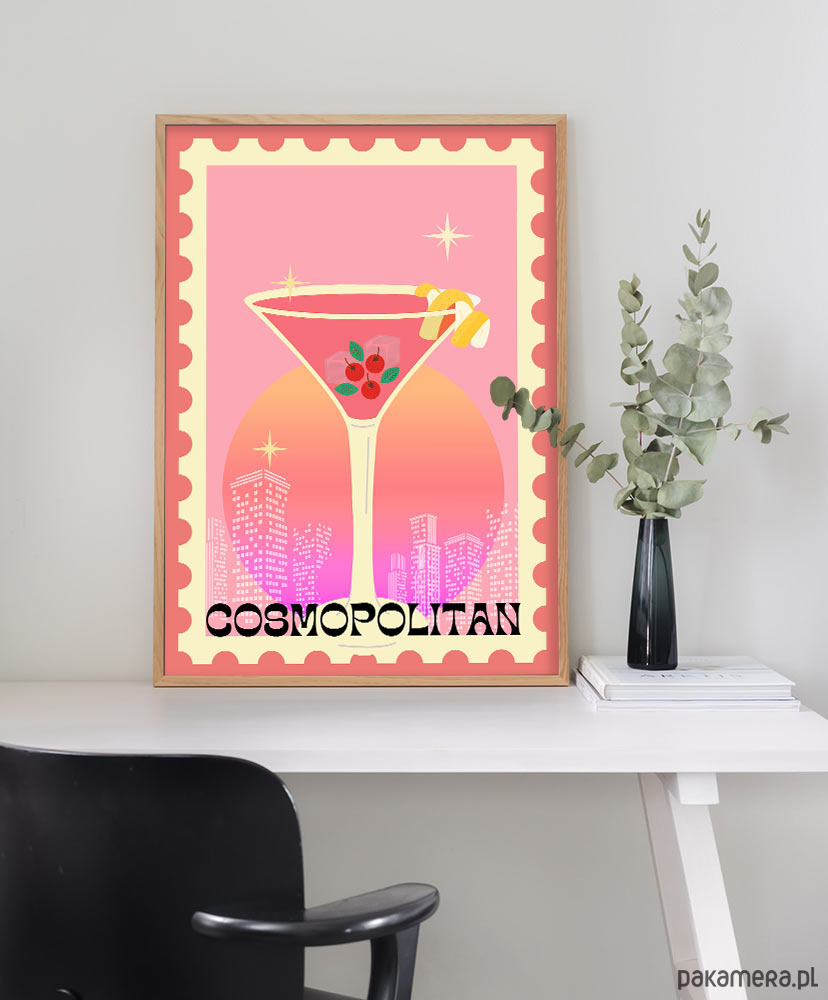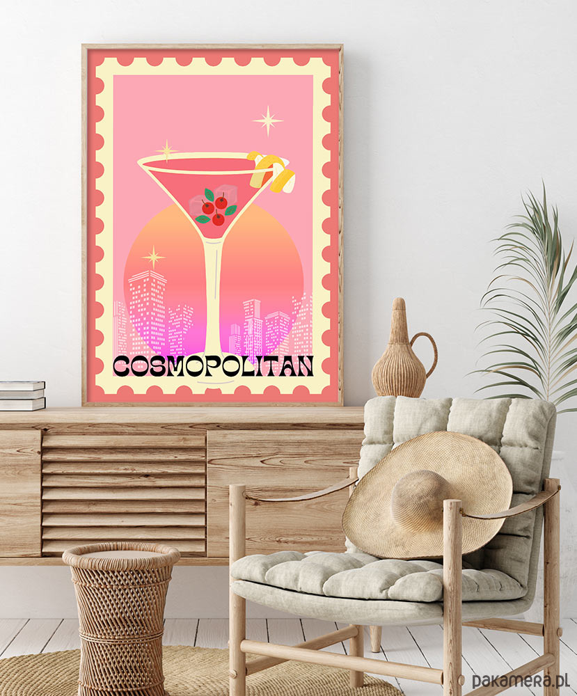 Klasyczny i wyrafinowany - taki jest drink Cosmopolitan i nasz plakat, który go przedstawia. Najbardziej miejski z koktajli na plakacie zachęca niewinnym różem z elementami czerwieni. Grafika autorstwa artystki i ilustratorki Elisandry Sevenstar.