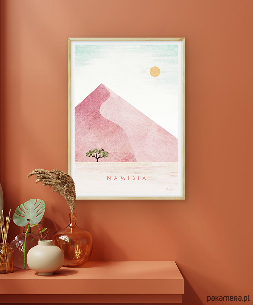 Plakat Namibia przedstawia olbrzymią wydmę górującą ponad spokojnym, afrykańskim krajobrazem. Piękne, minimalistyczne ujęcie tematu sprawia, że plakat doskonale sprawdzi się zarówno w pełnym chaosu domu podróżnika, jak i w eleganckim, nowoczesnym wnętrzu.