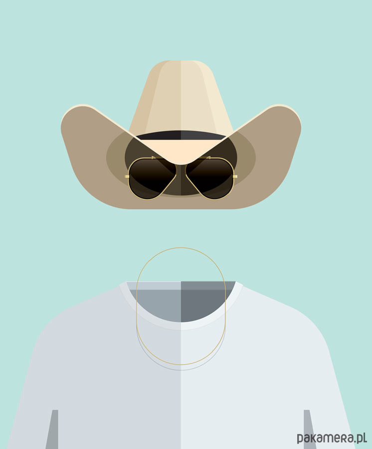 Plakat z autorską grafiką inspirowany filmem "Witaj W Klubie" (Dallas Buyers Club), reż. Jean-Marc Vallée. Pochodzi z serii "Cinema Costumes" (Kostiumy kinowe) i przedstawia strój Rona Woodroofa.