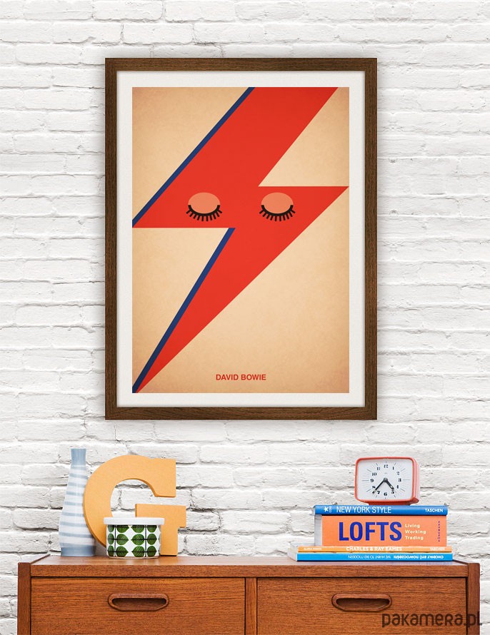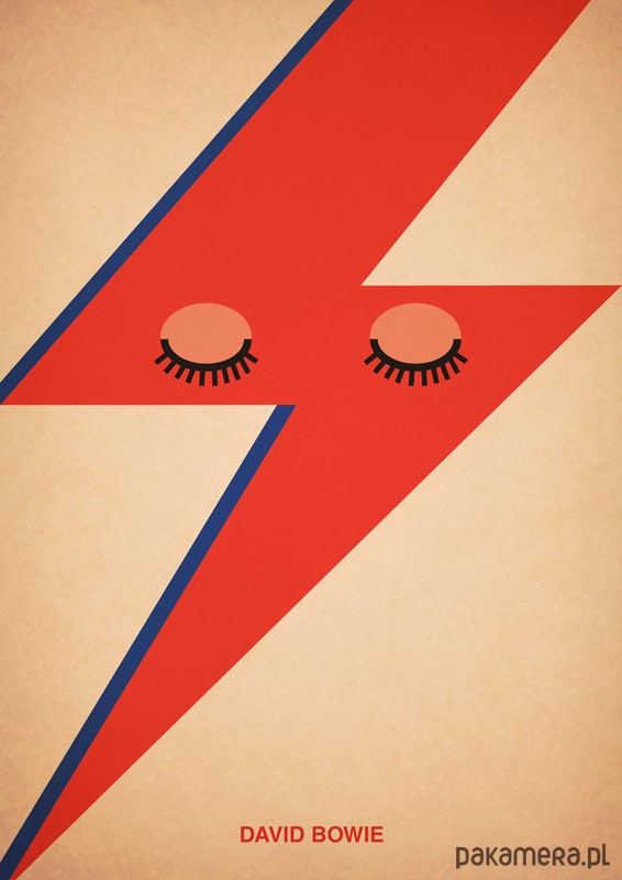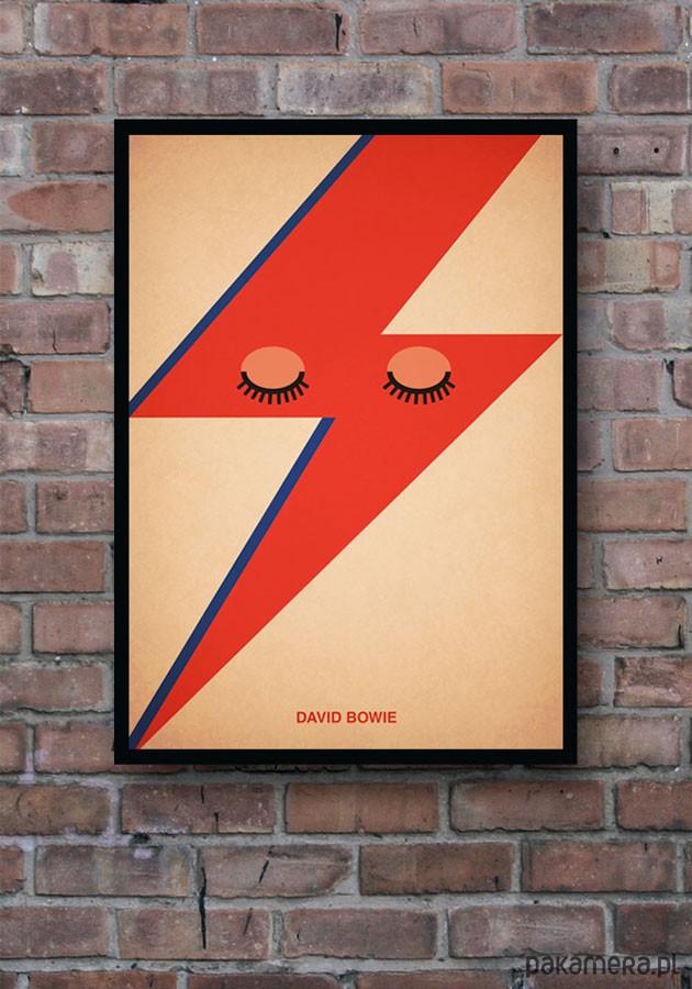 Plakat z autorską grafiką inspirowaną postacią Davida Bowie i jego albumem Aladdin Sane z 1973 roku.