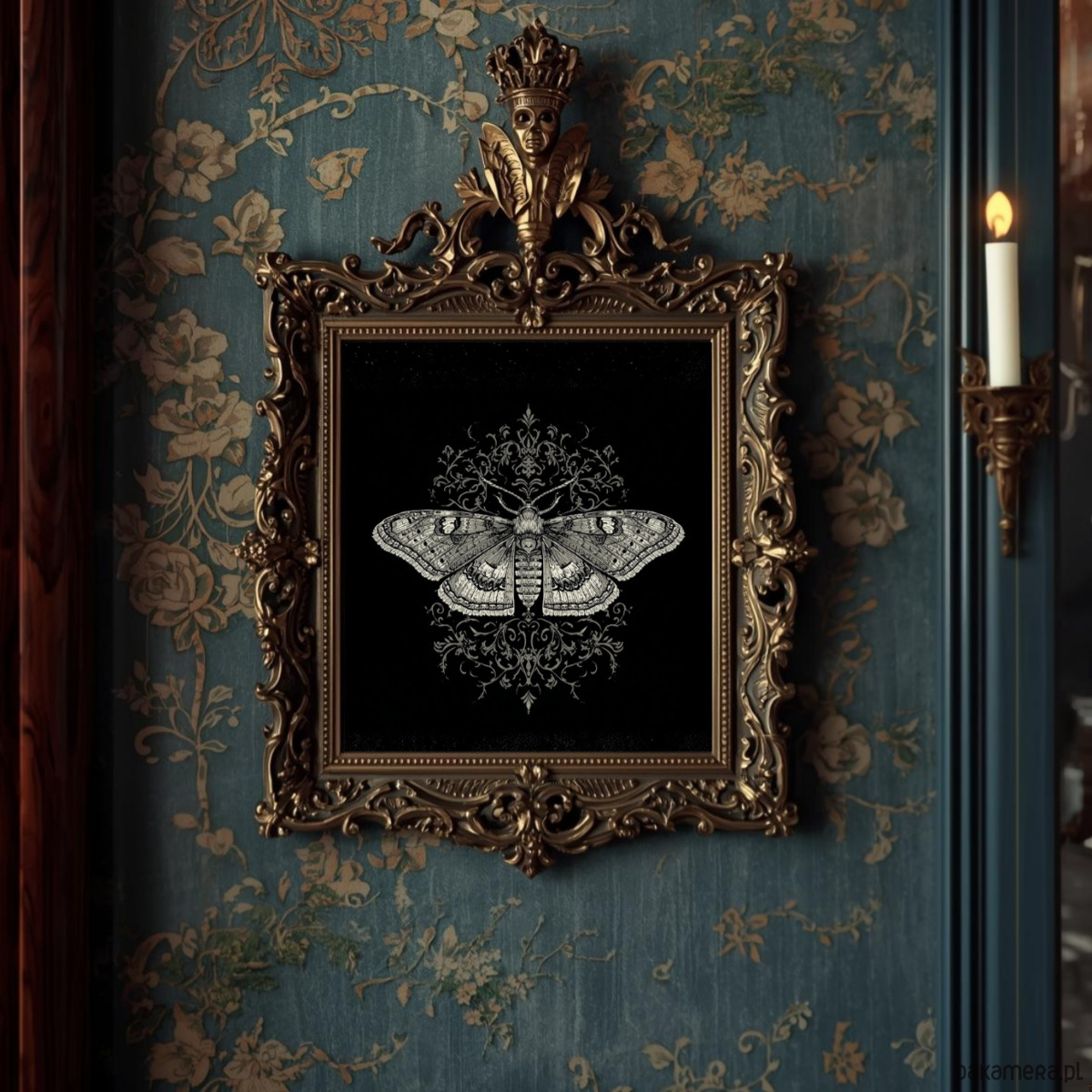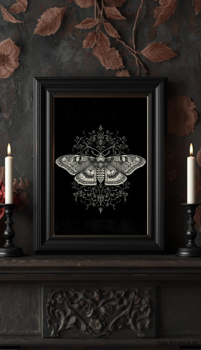 PLAKAT dekoracja gotycka ćma sztuka ścienna koronka