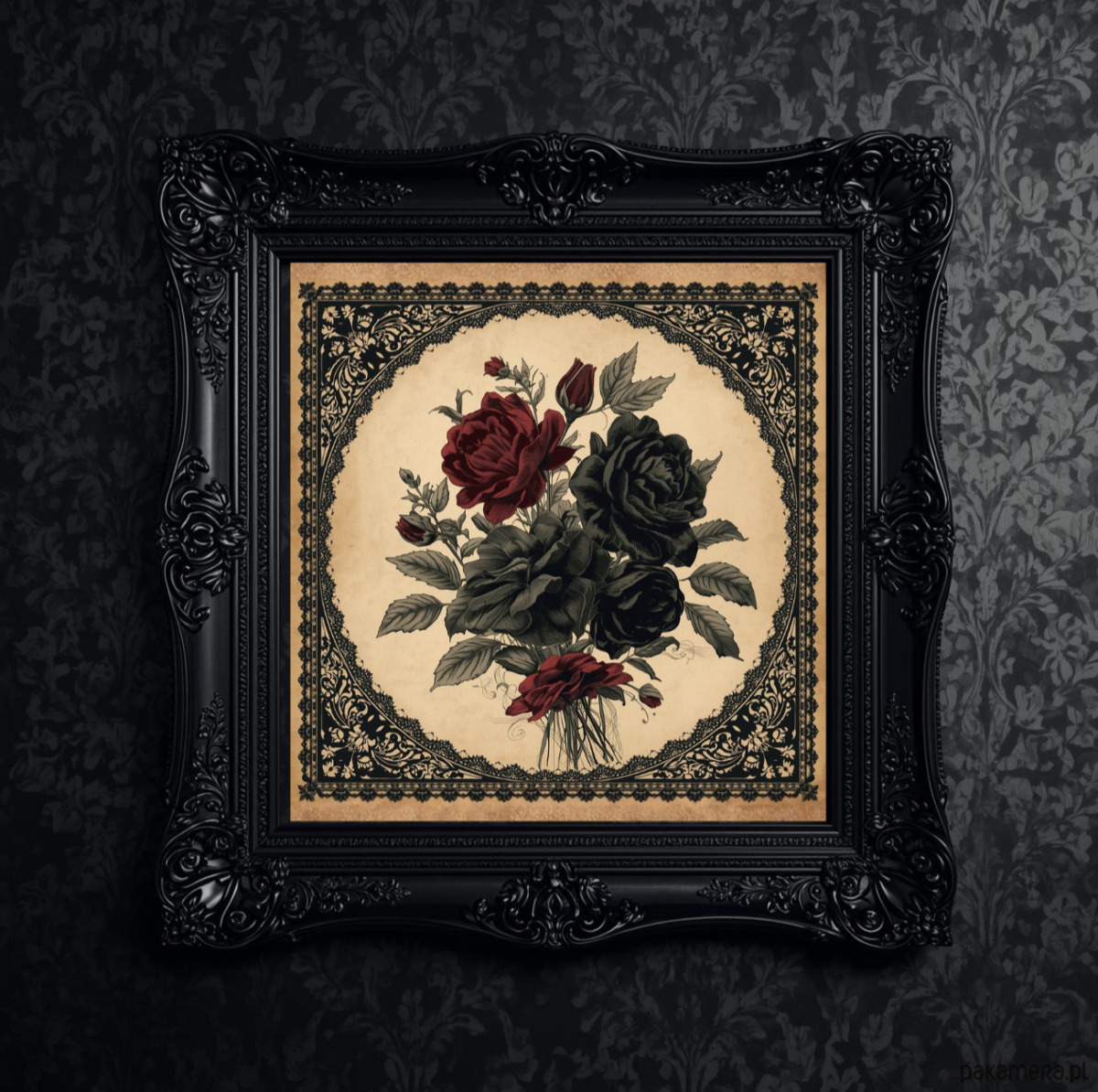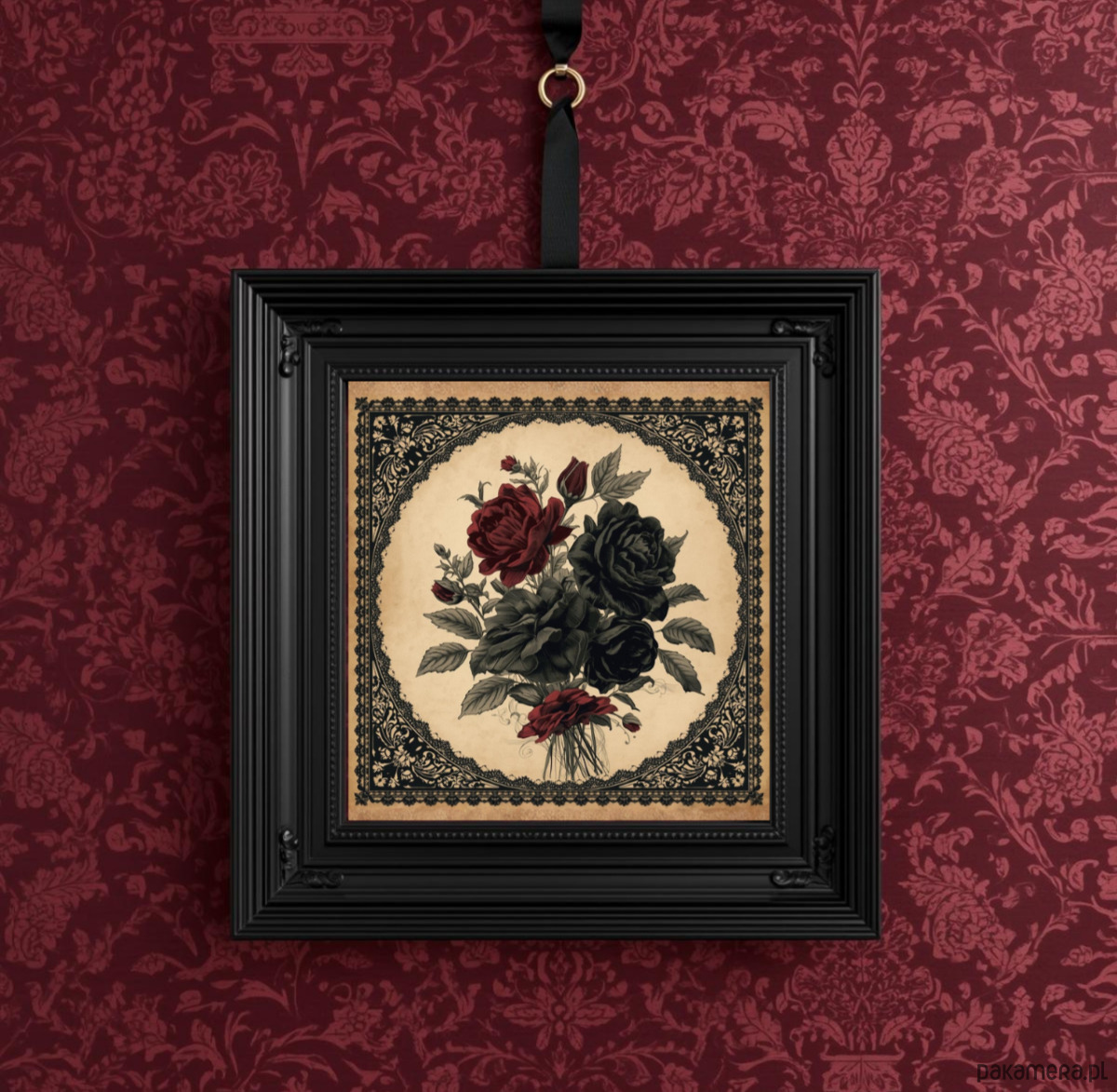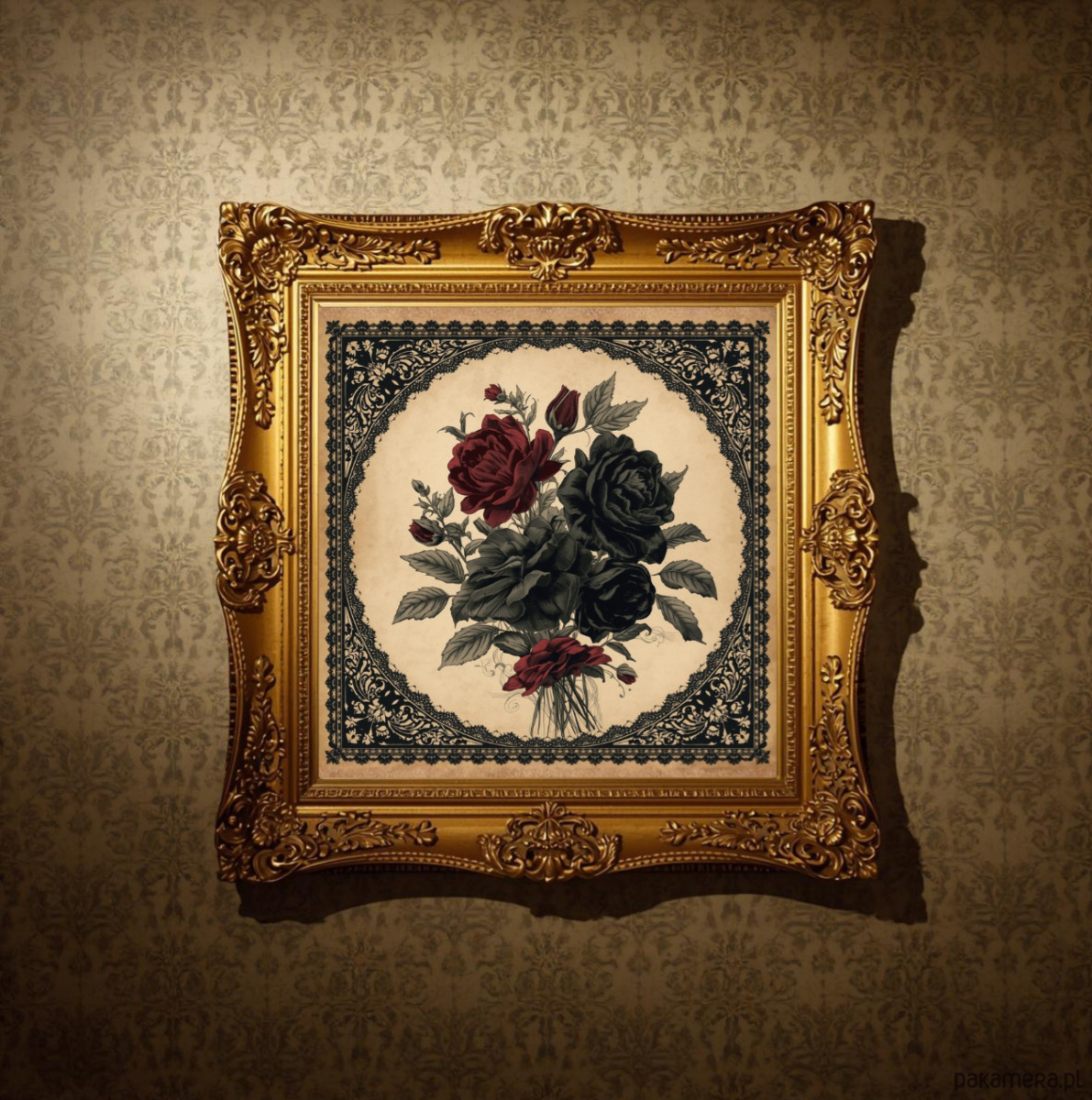 PLAKAT dekoracja gotycka róża sztuka ścienna koronka
