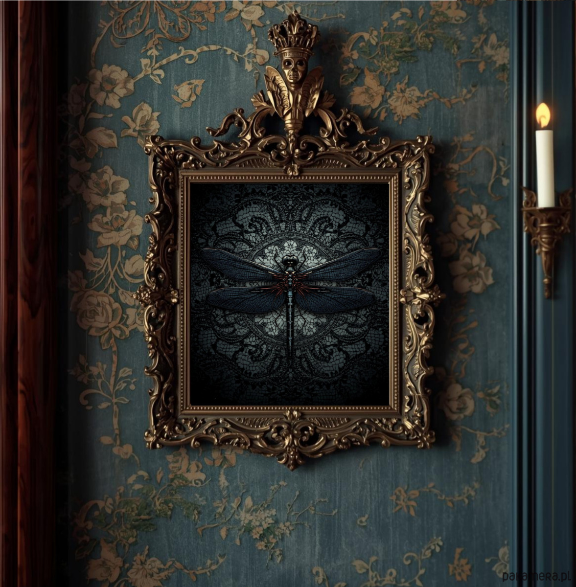 PLAKAT dekoracja gotycka ważka sztuka ścienna koronka