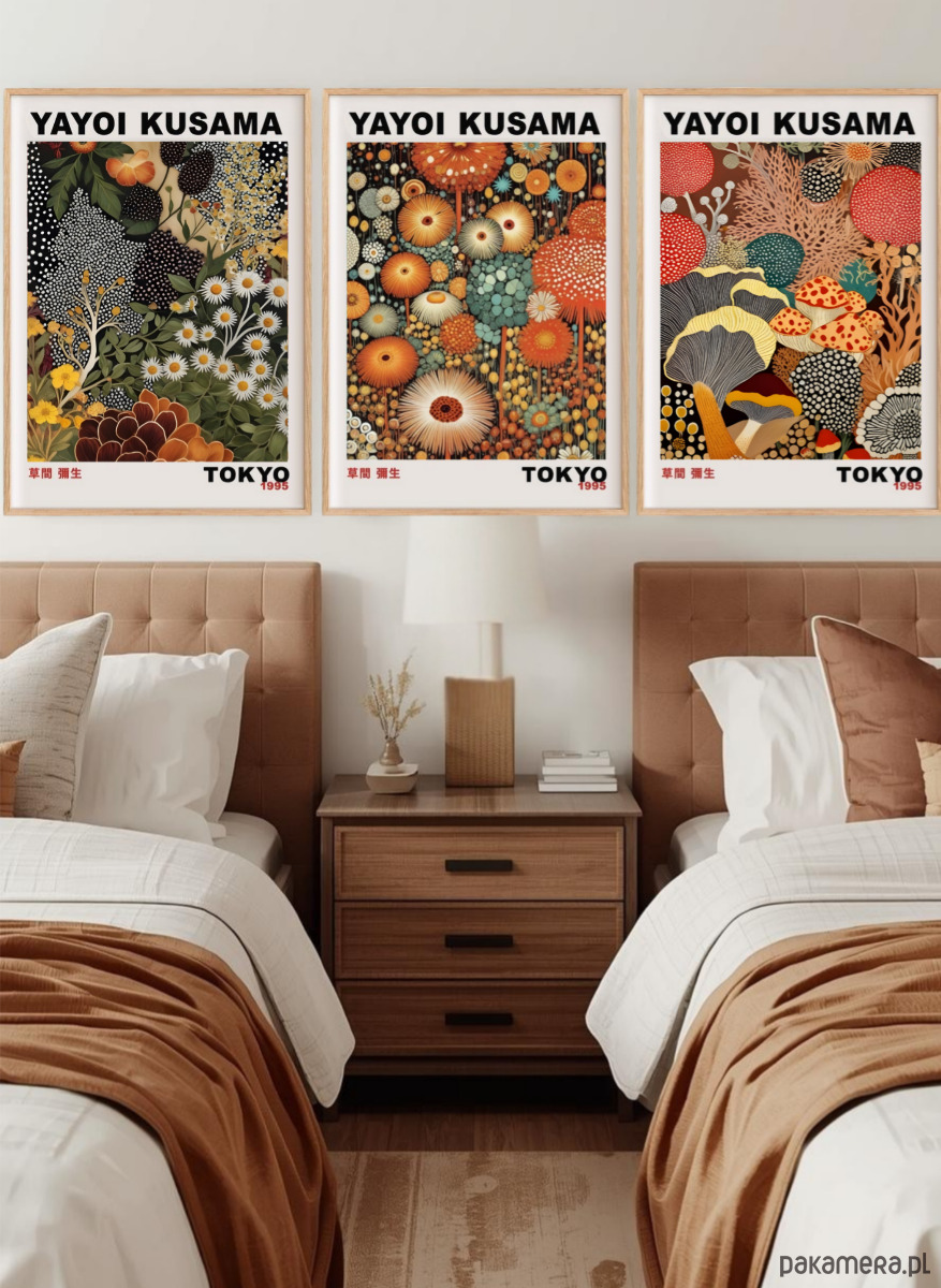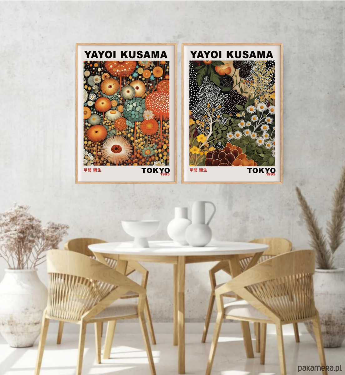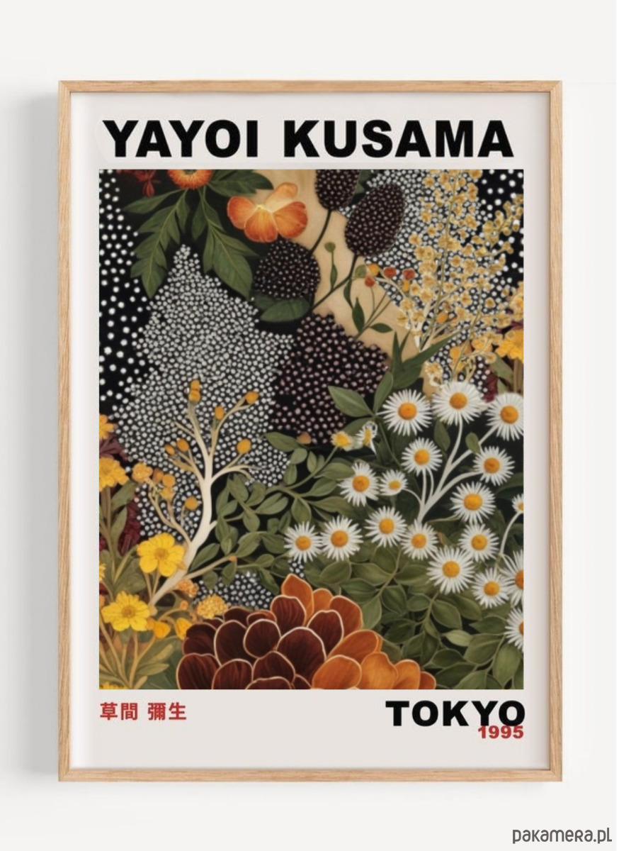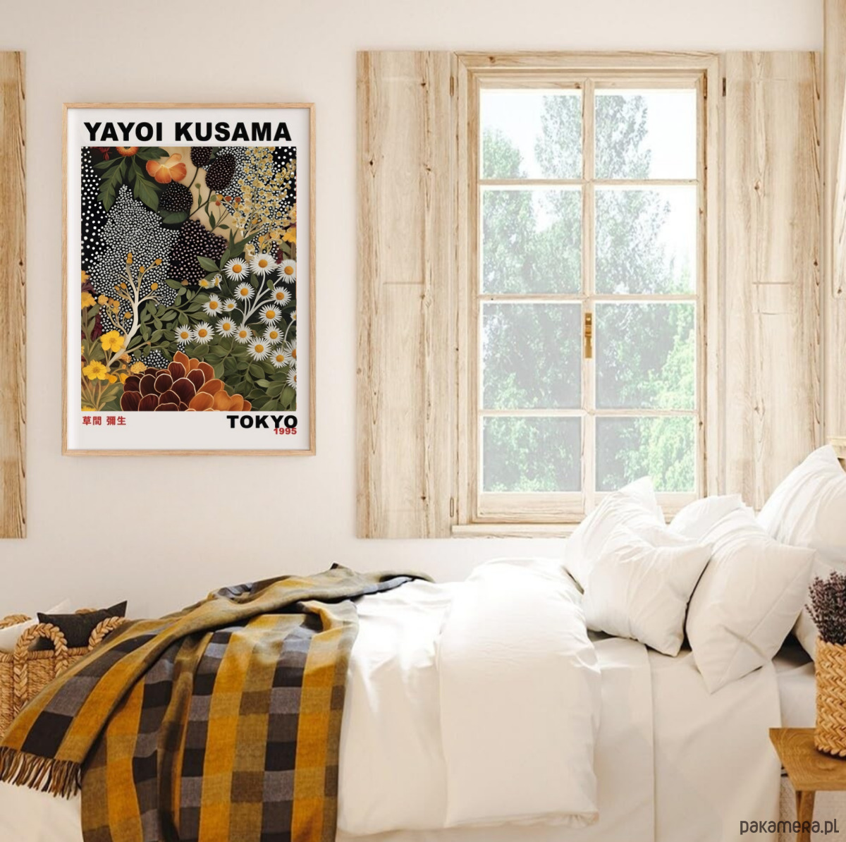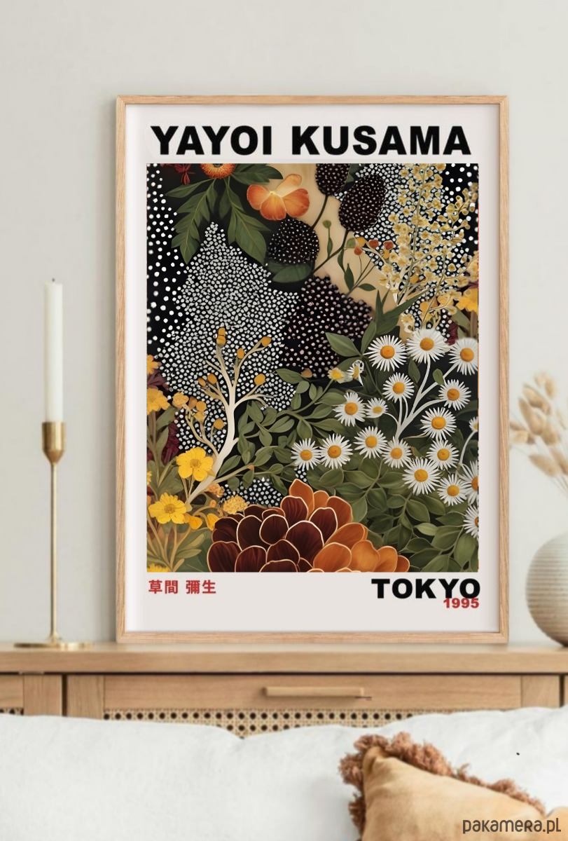 PLAKAT dekoracyjny kwiaty kropki abstrakcyjny łąka Yayoi Kusama, poster