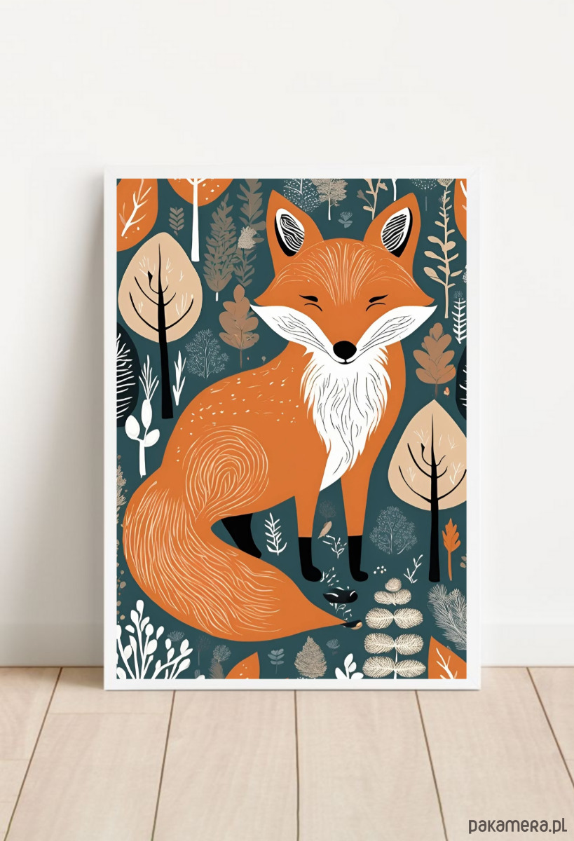 Leśna ilustracja z lisem.