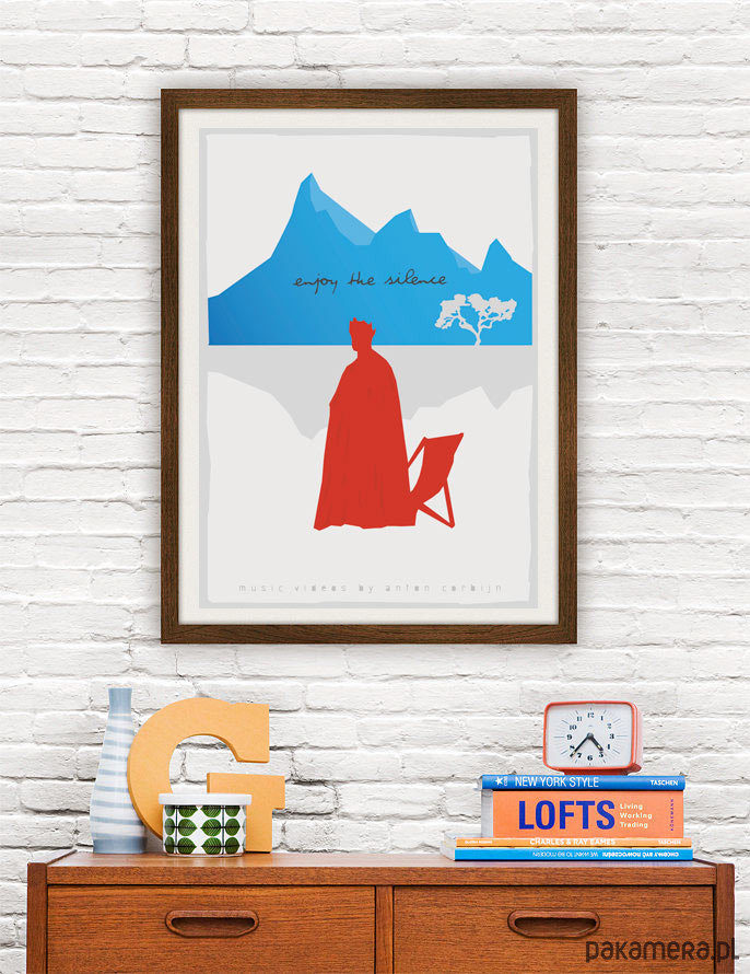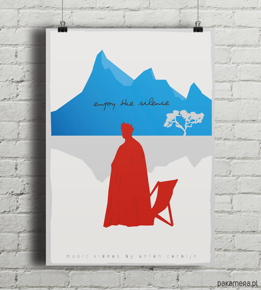 Plakat z autorską grafiką inspirowaną teledyskiem zrealizowanym przez Antona Corbijna do piosenki "Enjoy The Silence" zespołu Depeche Mode.