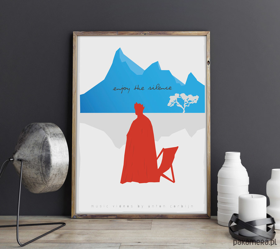 Plakat z autorską grafiką inspirowaną teledyskiem zrealizowanym przez Antona Corbijna do piosenki "Enjoy The Silence" zespołu Depeche Mode.