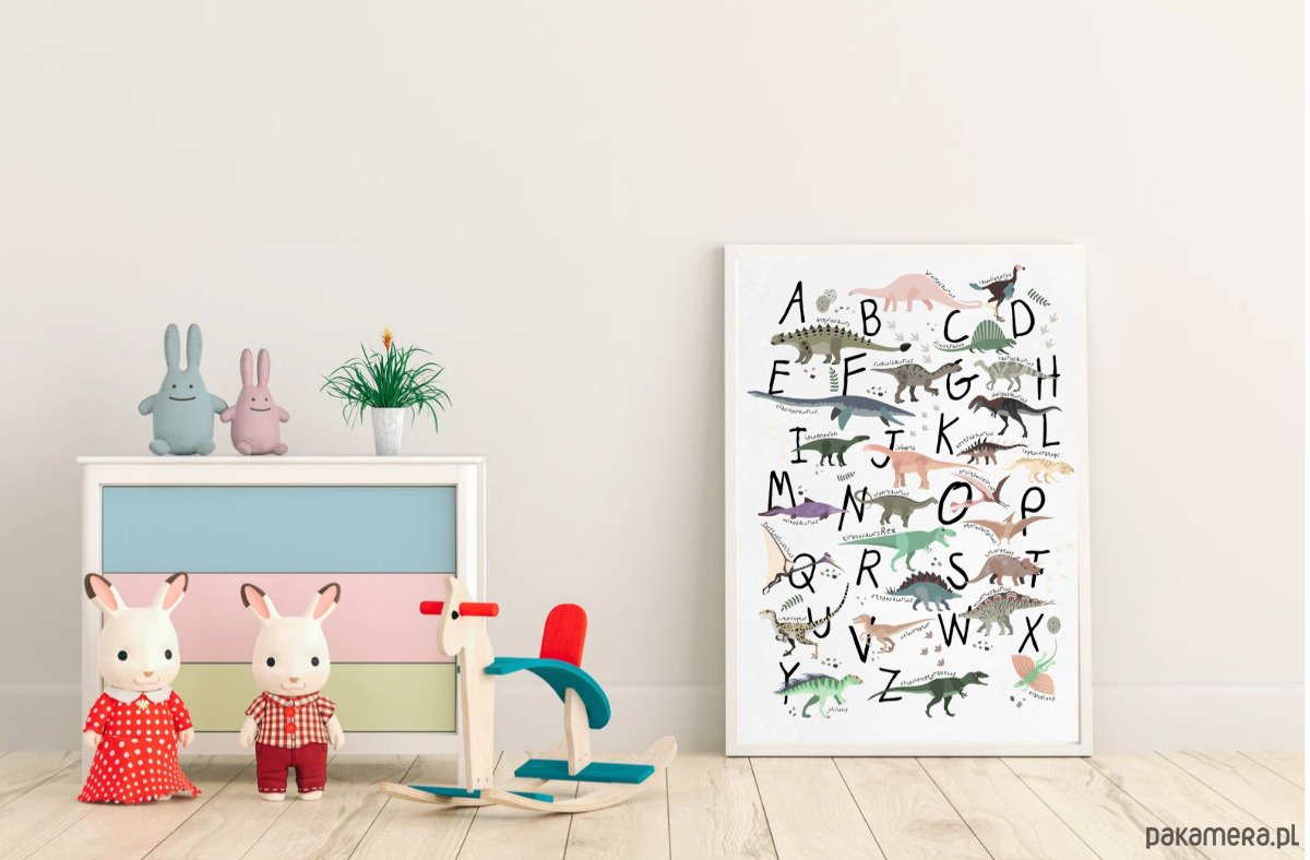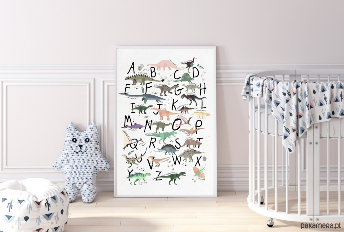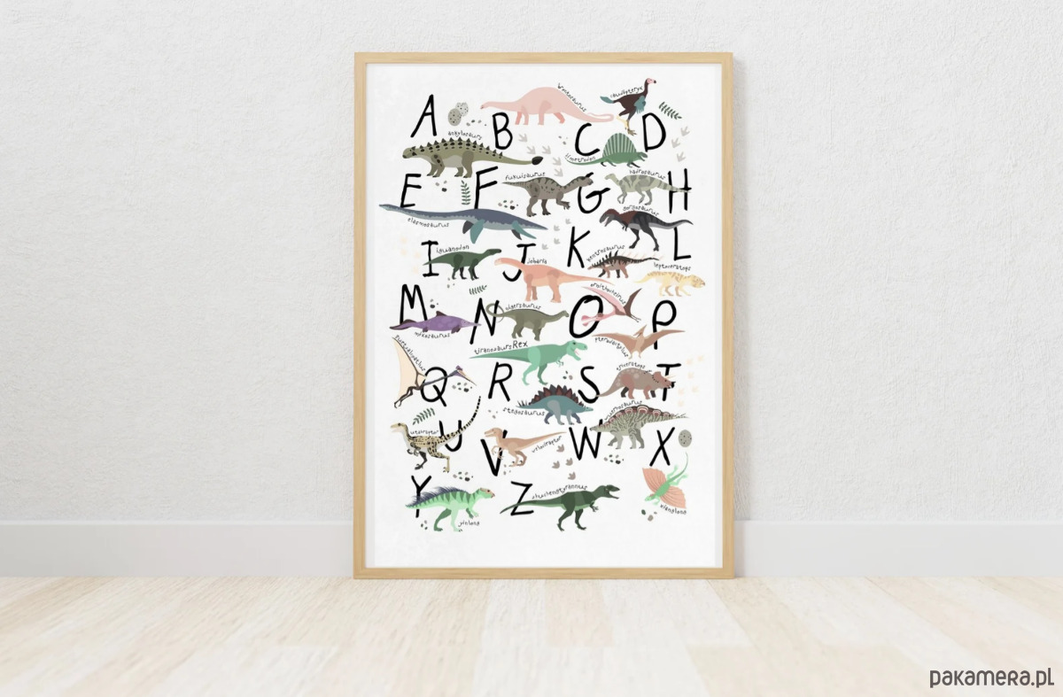 PLAKAT dinozaur dinozaury alfabet pokój dziecka