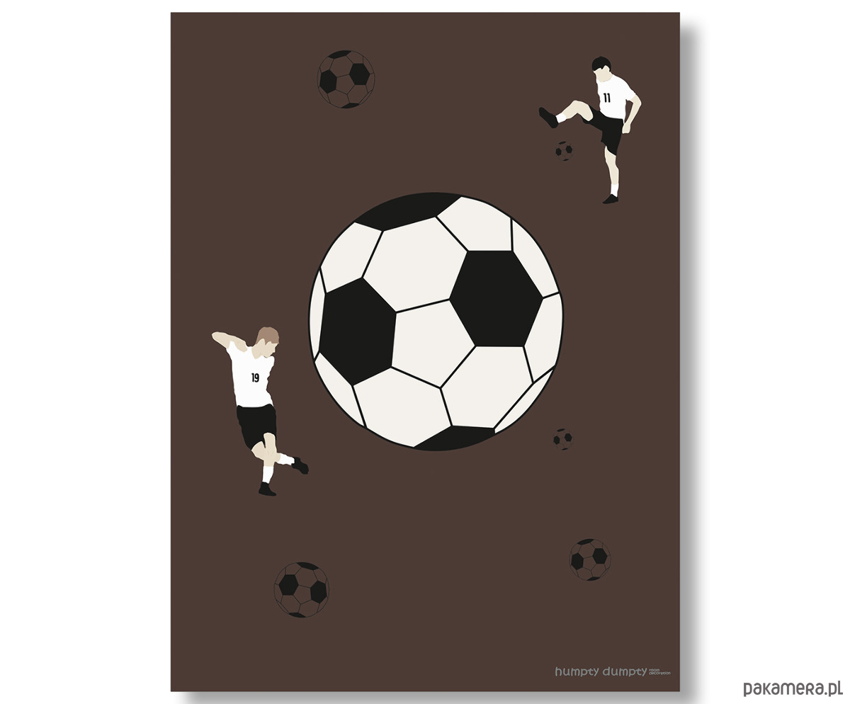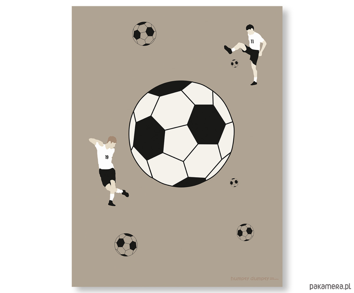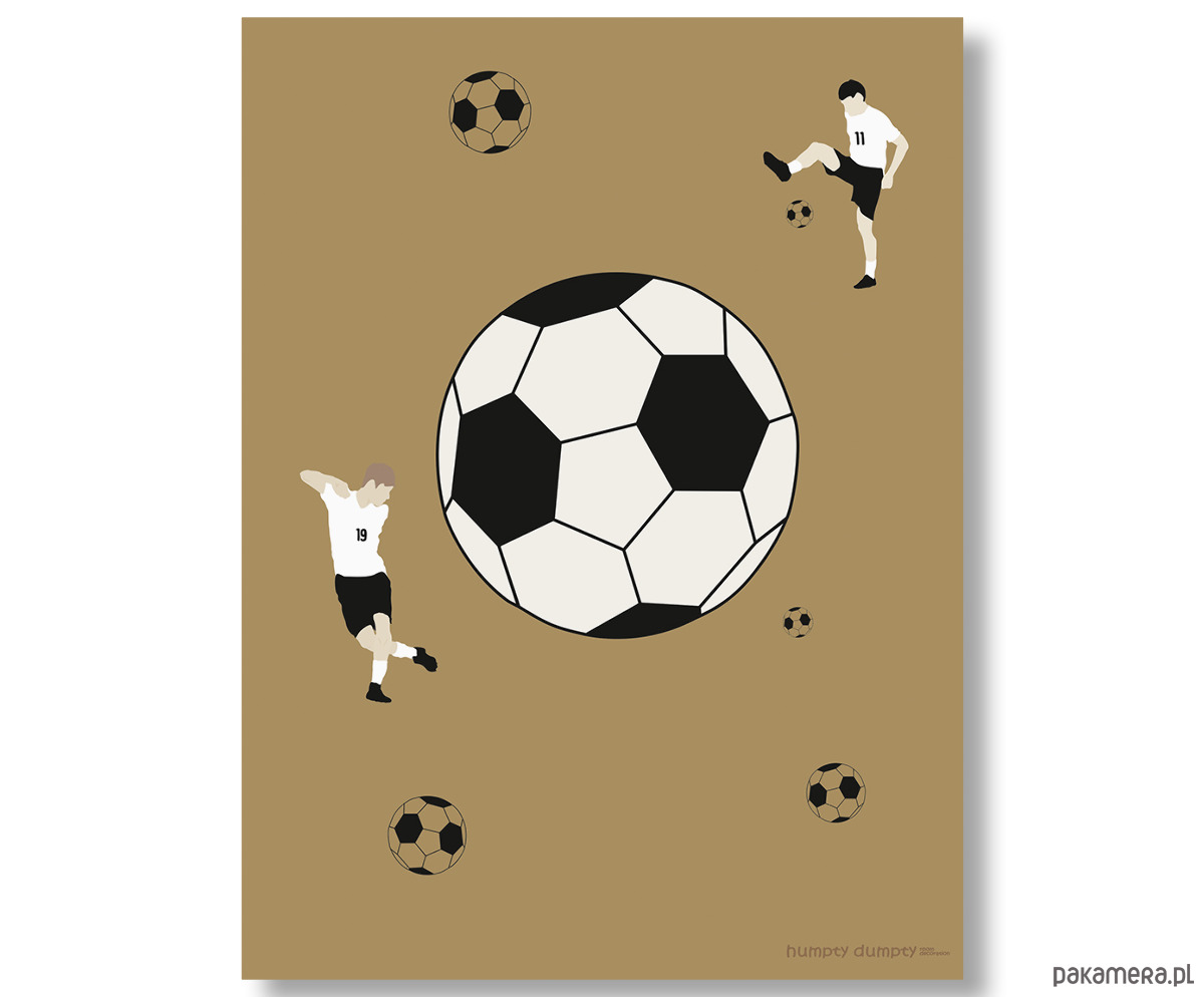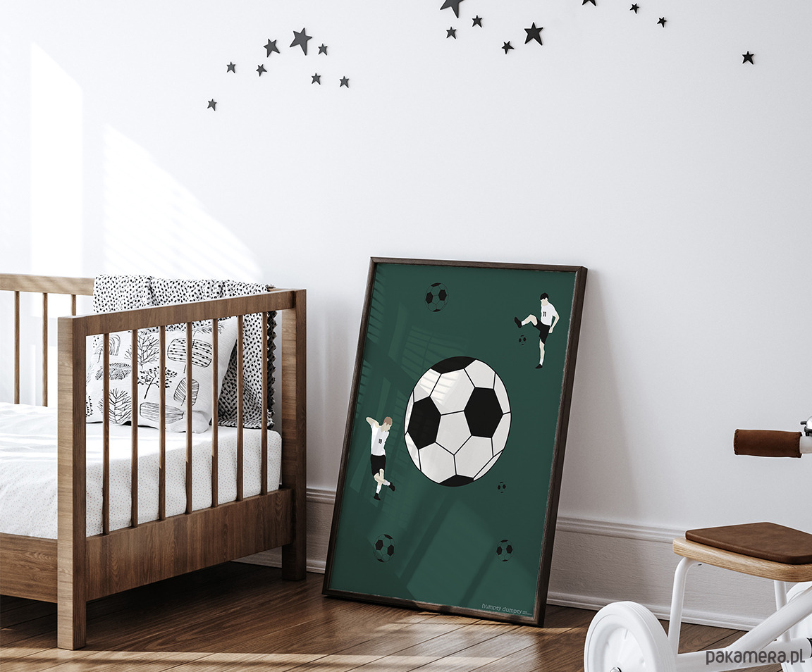 Plakat dla dzieci Soccer to nowoczesna dekoracja ścienna inspirowana pasją do futbolu. Minimalistyczny wzór z dużą piłką i sylwetkami piłkarzy na tle w różnych odcieniach do wyboru tworzy wyjątkowy efekt wizualny, który od razu przyciąga wzrok. To idealny wybór dla miłośników sportu, a zwłaszcza młodych fanów piłki nożnej, którzy chcą wnieść do swojego pokoju energię i charakter.