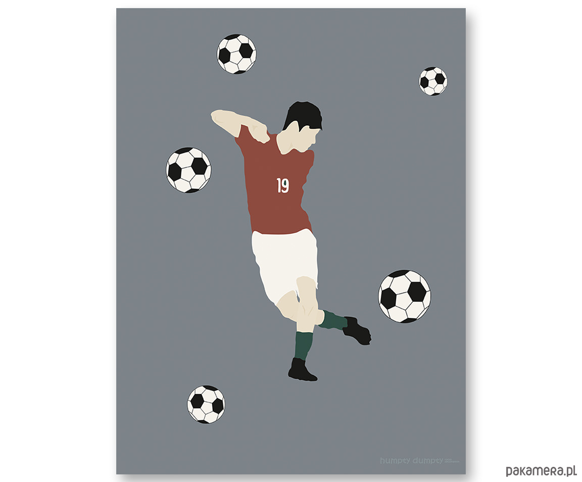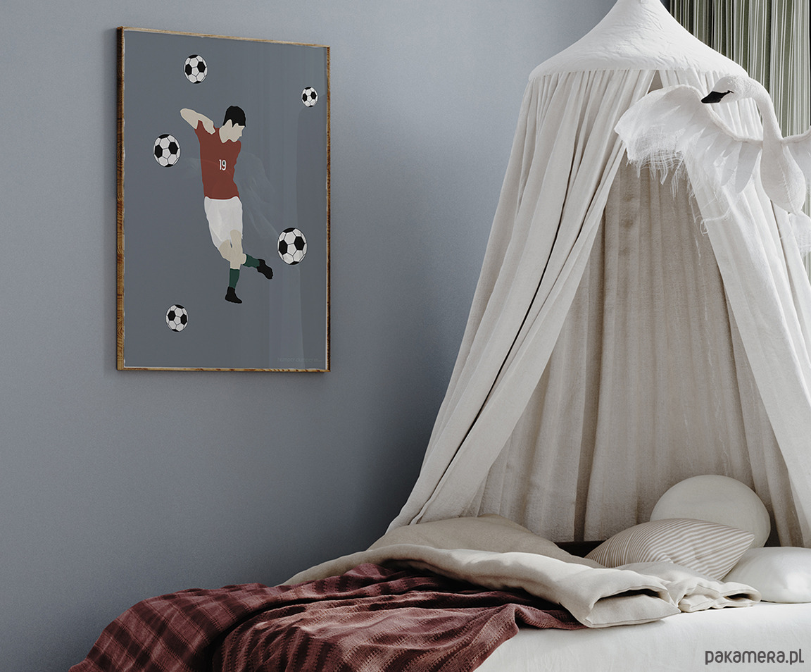 Plakat dla dzieci Soccer to dekoracja do pokoju dziecięcego. Grafika z piłkarzem idealnie wpasuje się do wnętrz stworzonych ze sportowym klimatem. Swą oryginalnością wnosi ciekawe rozwiązanie aranżacji przestrzeni. Świetnie komponuje się z innymi kolekcjami naszych tapet z motywem piłki nożnej.