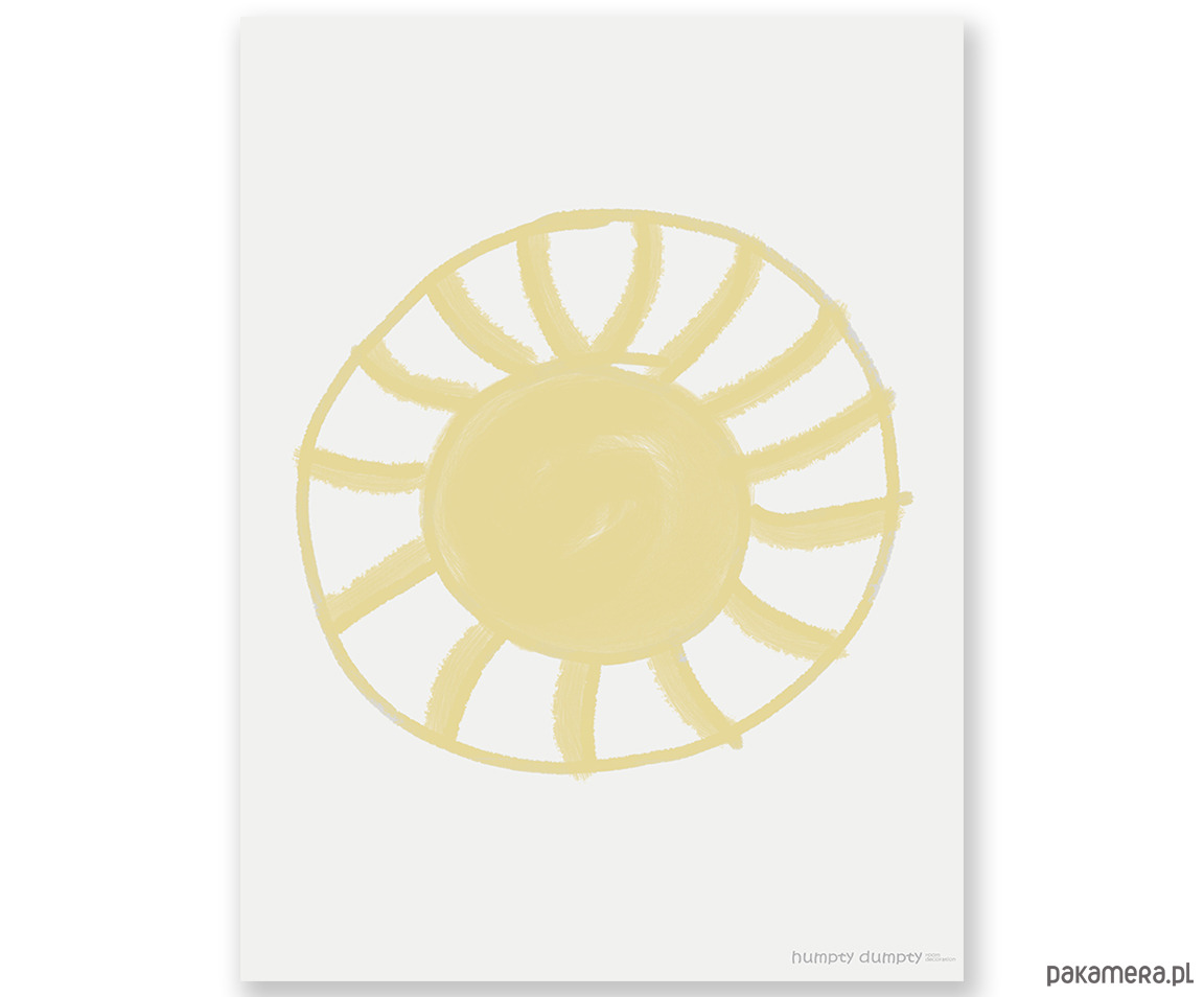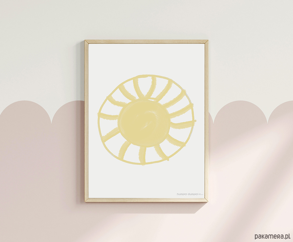 Plakat dla dzieci Sunshine to dekoracja ścienna do pokoju dziecięcego. Plakat przedstawia rysowane żółte słońce na lekko szarym tle. Linia jest swobodna i niedoskonała, co nadaje kompozycji autentyczność i naturalność, przypominając prace małych artystów. Grafika jest świeża, prosta i pełna ciepła, dzięki czemu wprowadza do wnętrza radosną, przyjazną atmosferę. Stonowana kolorystyka sprawia, że idealnie komponuje się z tapetą Rainbow marki Humpty Dumpty Room Decoration, tworząc harmonijną całość. Plakat doskonale pasuje do dziecięcych wnętrz urządzonych w stylu skandynawskim, boho lub minimalistycznym, dodając im subtelnego uroku.