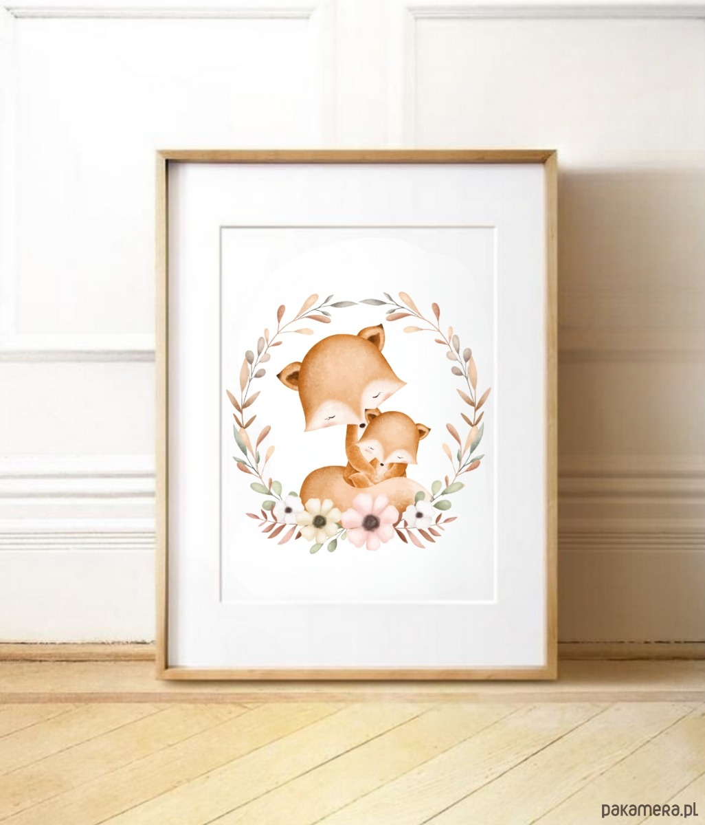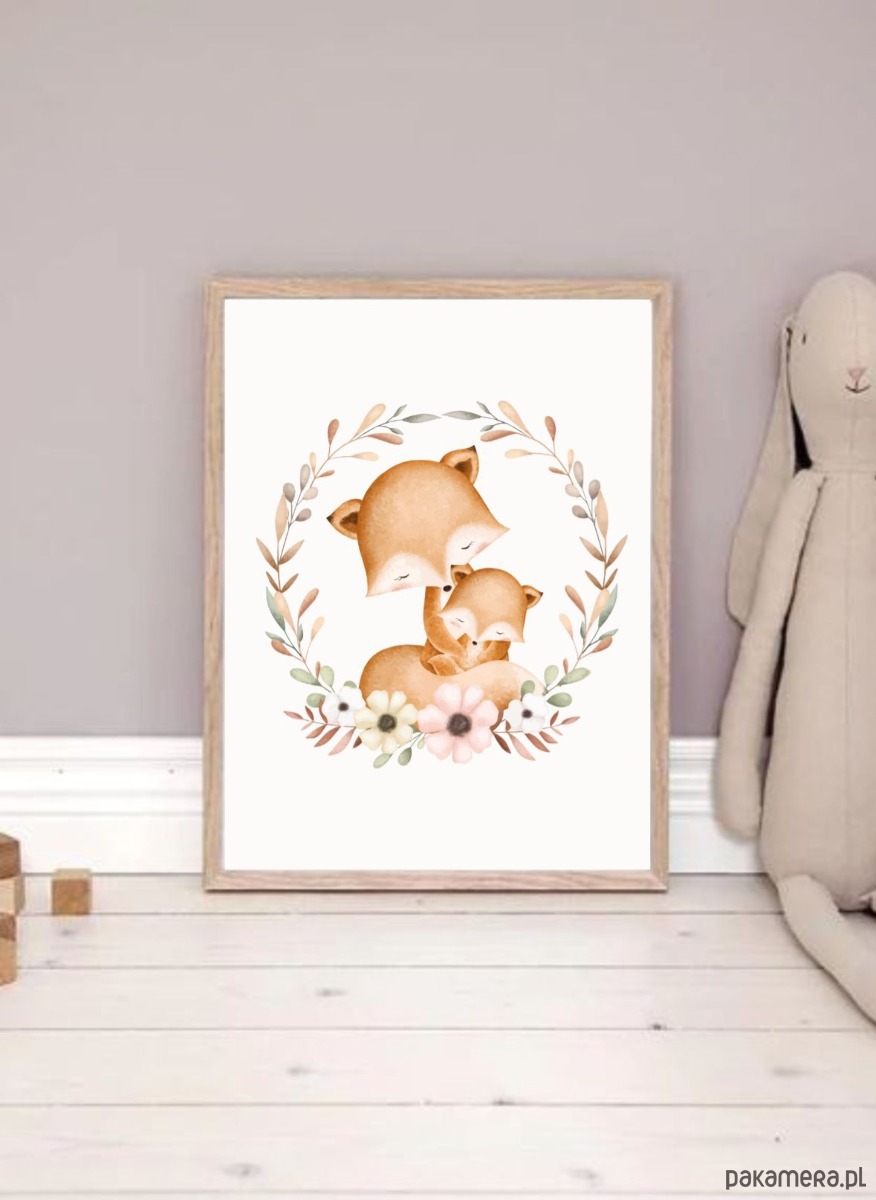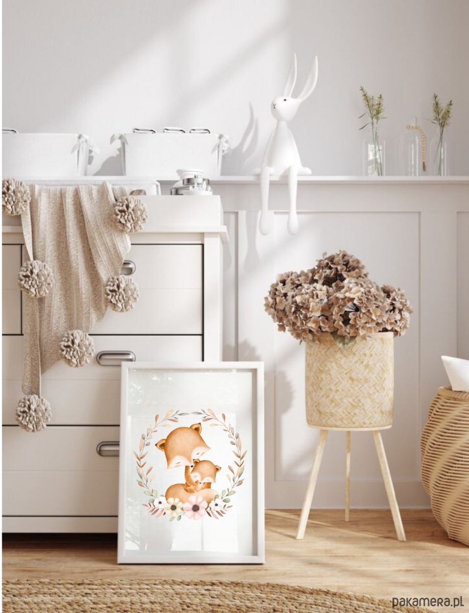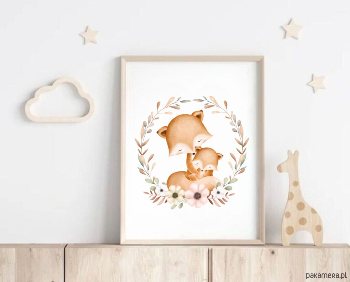 PLAKAT dla dziecka lis boho obrazek dziecięcy beżowy