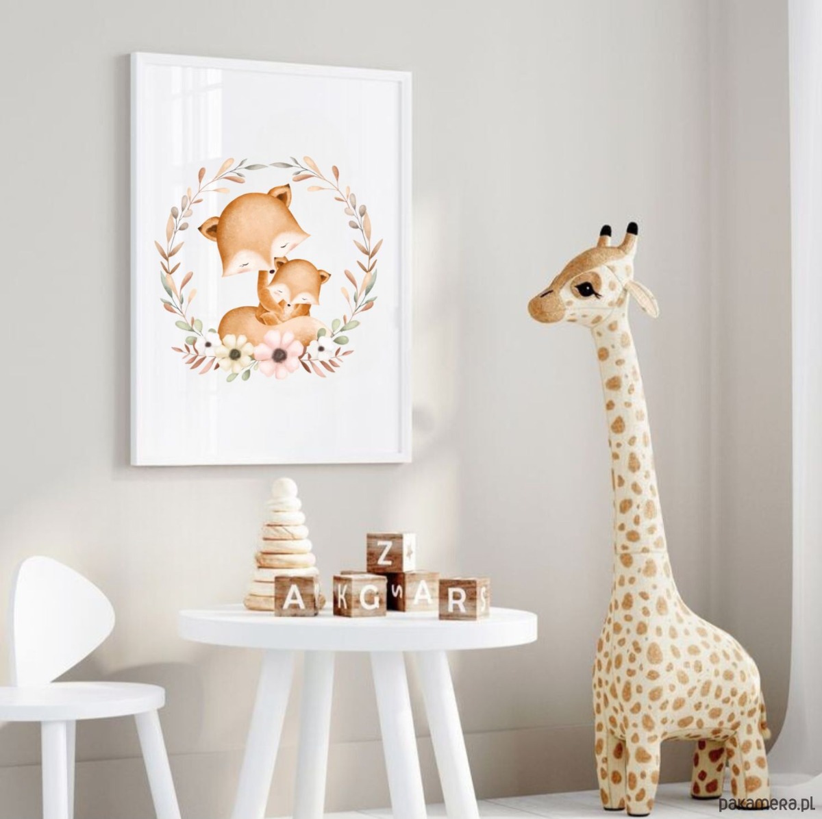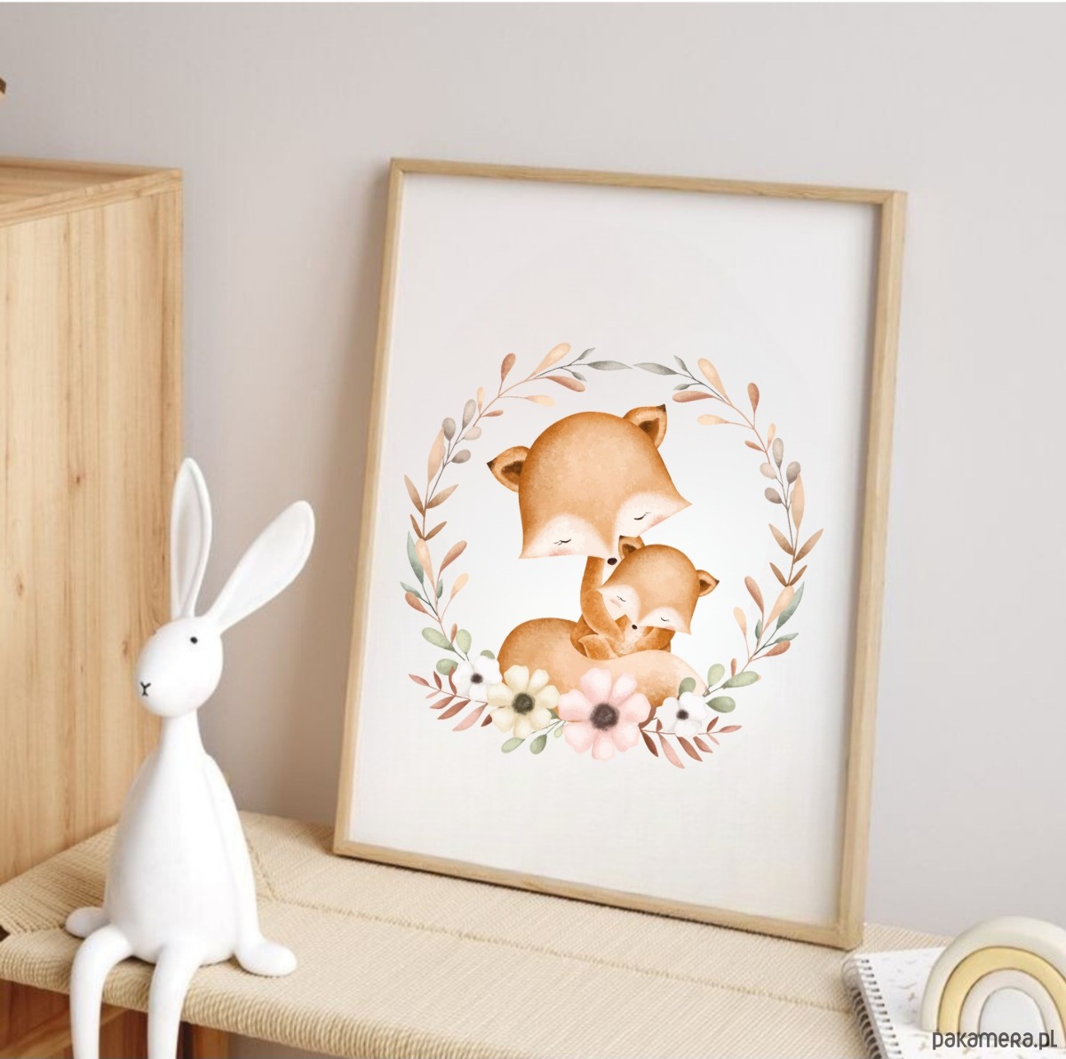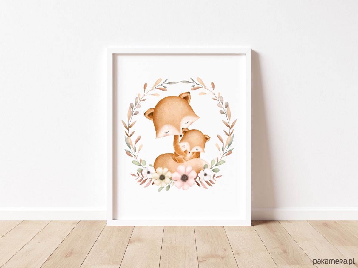 PLAKAT dla dziecka lis boho obrazek dziecięcy beżowy
