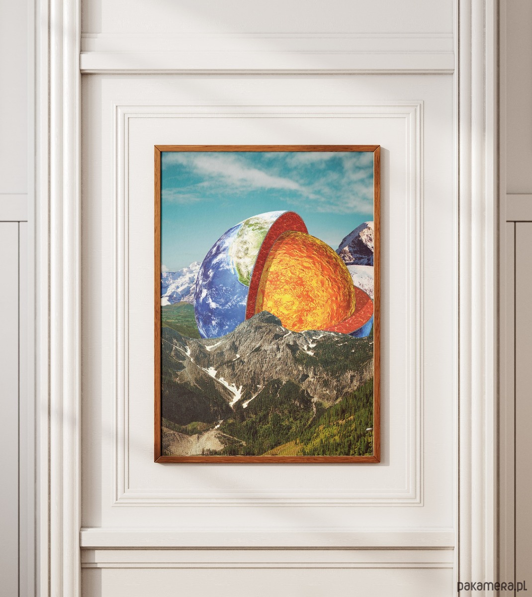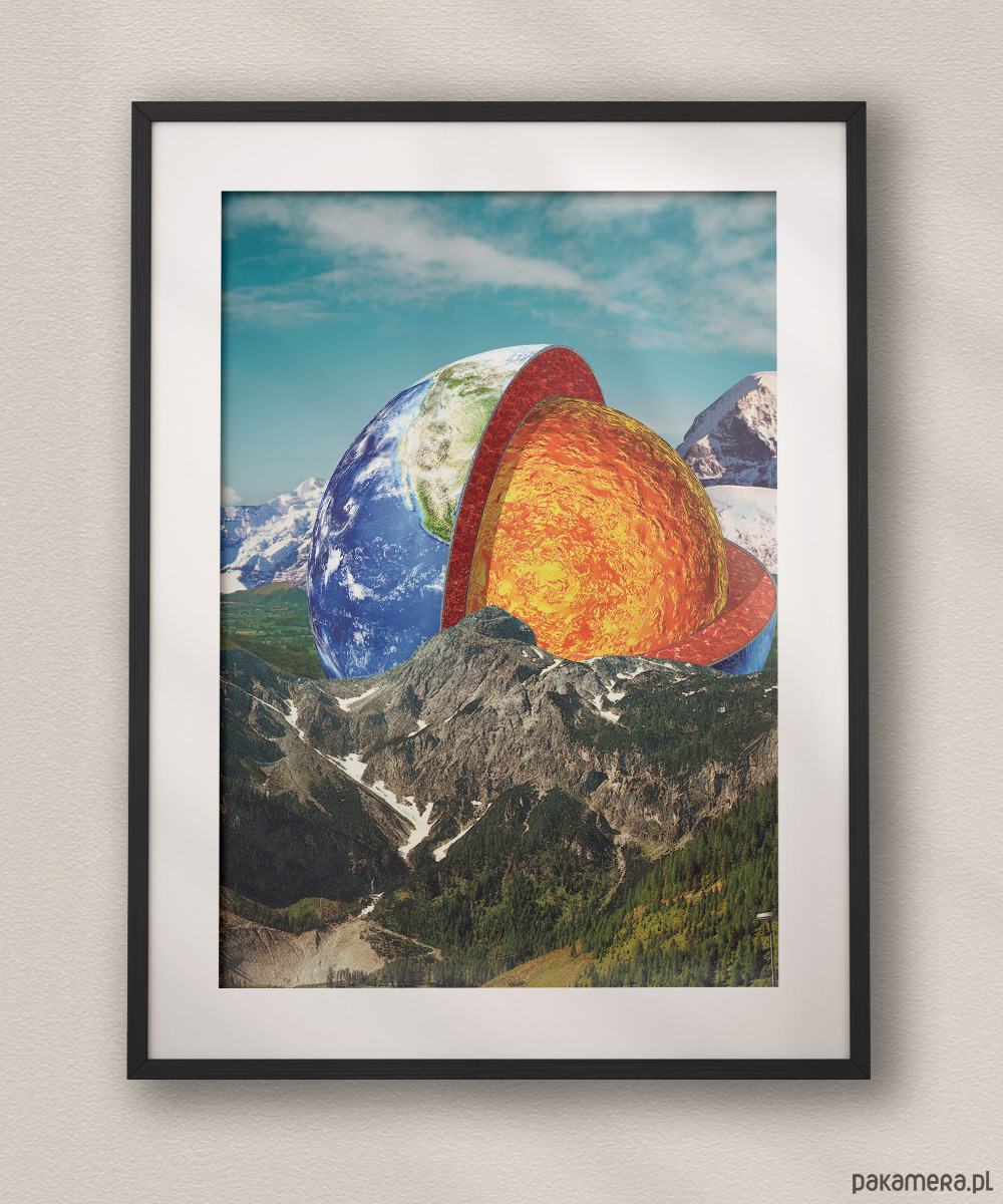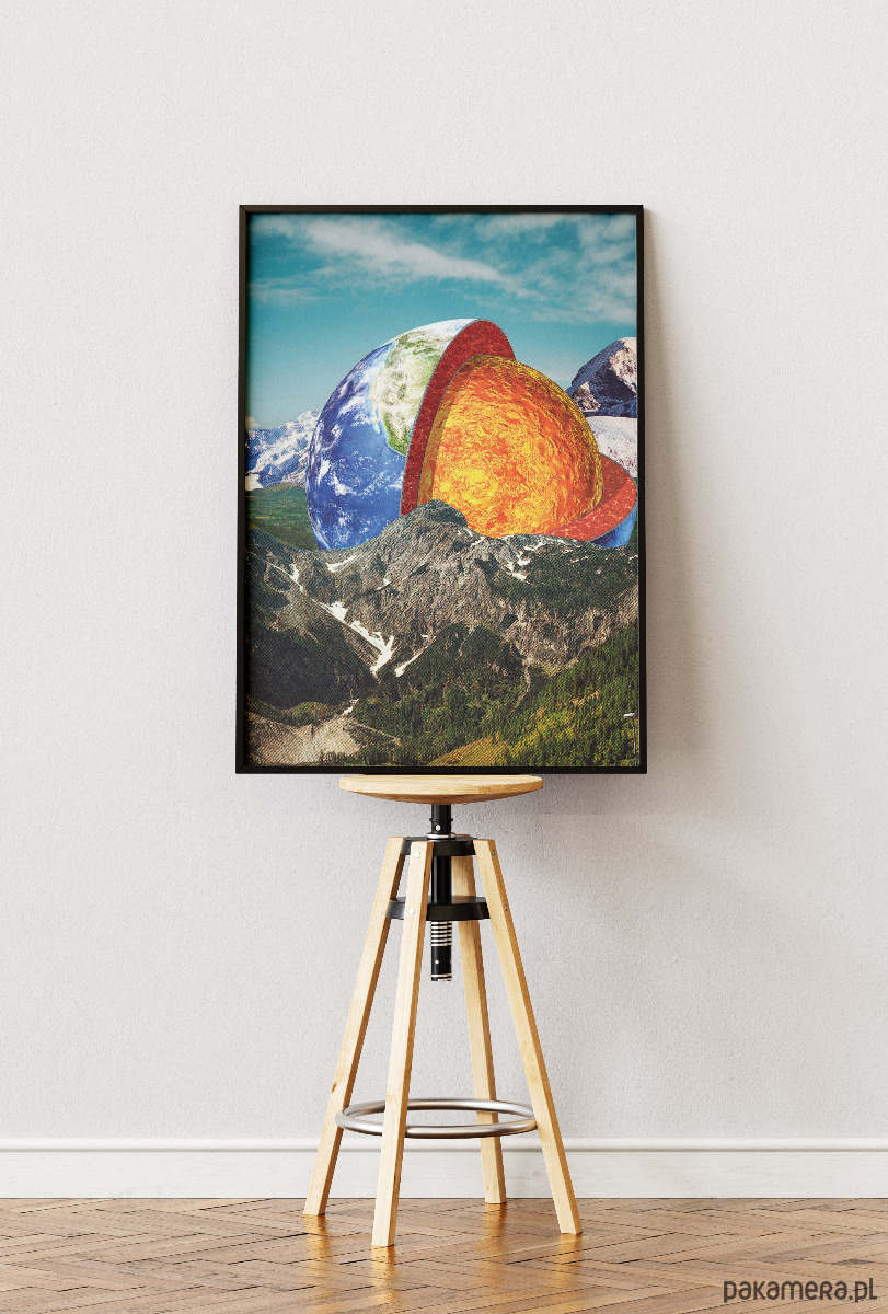 Plakat idealny do gabinetów, domowych bibliotek oraz nowoczesnych salonów, w których brakuje mocnego, kolorystycznego akcentu. Intensywne barwy jądra ziemi (żółcie, pomarańcze, czerwienie) świetnie ożywią surowe, loftowe wnętrza lub pomieszczenia z dużą ilością książek. Dzięki swojemu unikalnemu charakterowi, najlepiej prezentuje się w prostej, ciemnej ramie, która domyka kompozycję i nadaje jej profesjonalny, galeryjny sznyt.