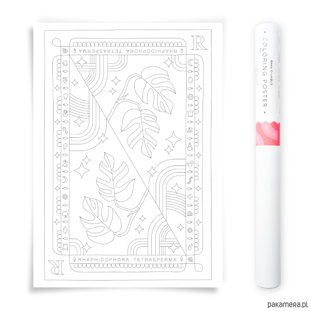 Wygląda jak mini monstera, ale ma swój własny, wielkolistny charakter! Rhaphidophora Tetrasperma rozsiadła się wygodnie na plakacie i tylko czeka, aż dodasz jej trochę koloru, blasku i artystycznego szaleństwa.