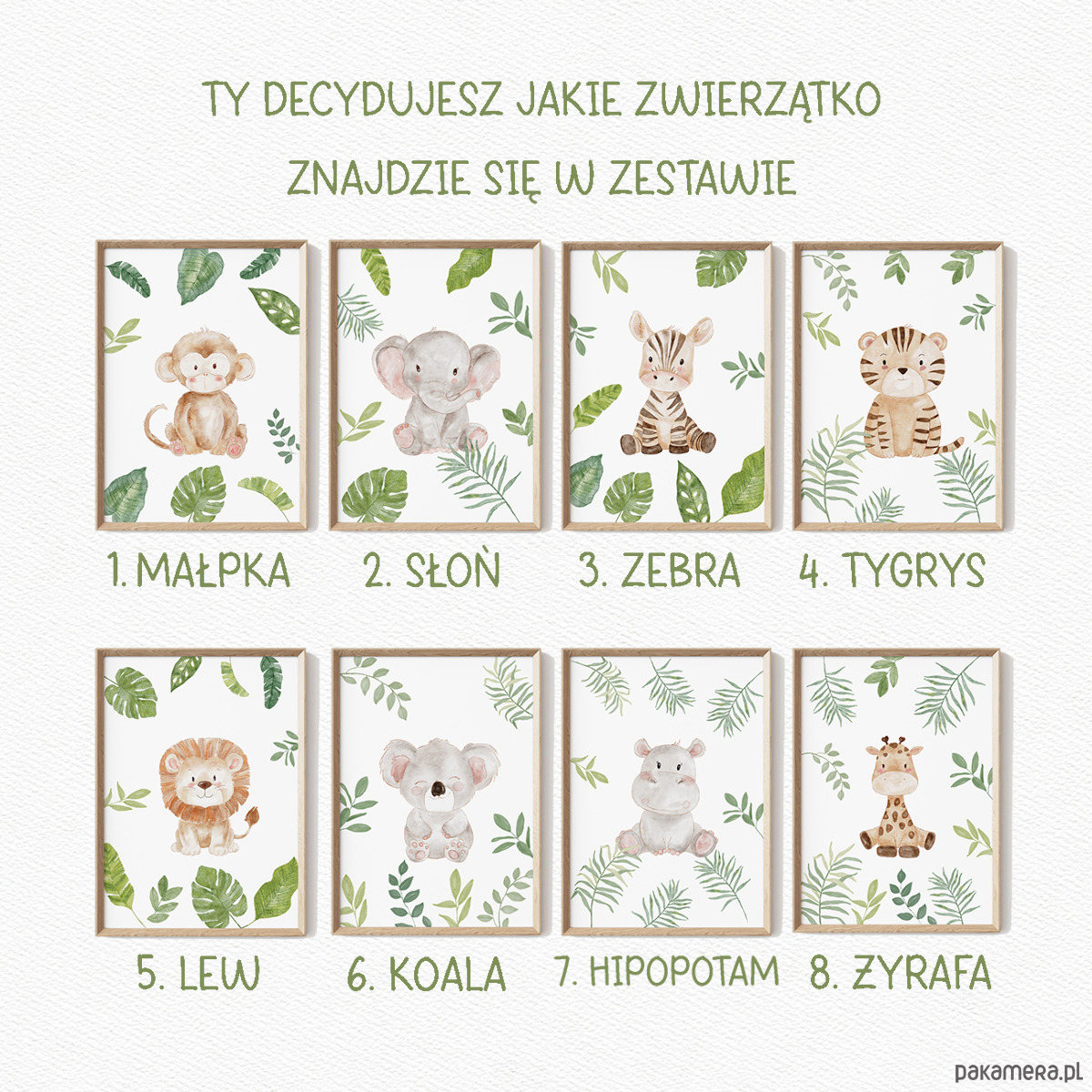 Zwierzątka to wyboru: miś koala, lew, żyrafa, hipopotam, tygrys, małpka, słonik ;ub urocza zebra.