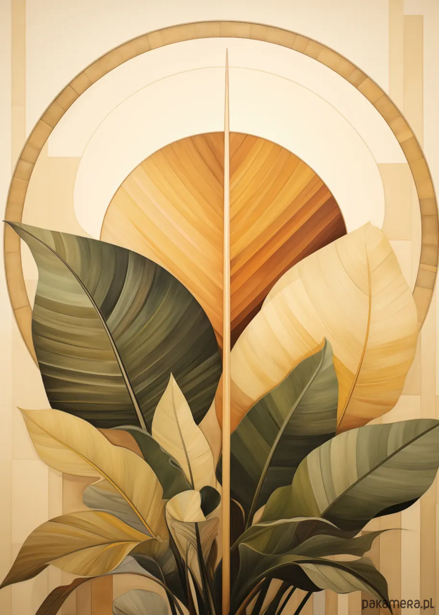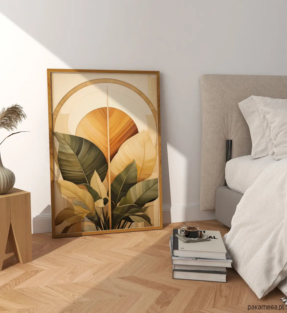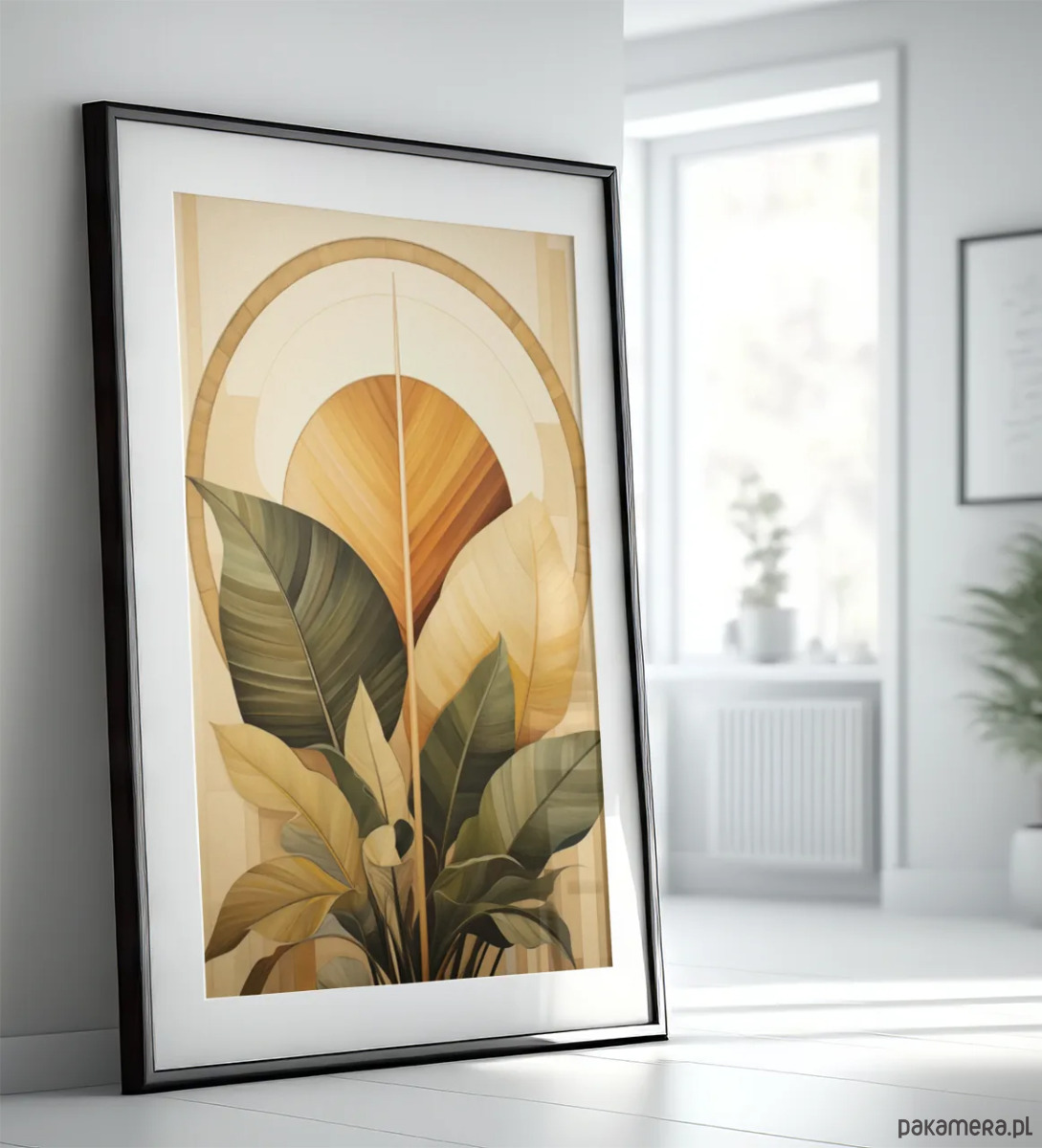 Plakaty z tej kolekcji to kwintesencja elegancji w nowoczesnym wydaniu. Misternie zaprojektowane, nawiązujące do stylu art déco grafiki z wdziękiem łączą motyw przyrody z ikonicznym stylem tamtej epoki. Duże, nasycone szczegółami liście, które stanowią główny motyw plakatów, są wyrazem fascynacji naturą. Ich kształty i faktura zostały uwydatnione dzięki zastosowaniu mocno zarysowanych linii, okręgów i prostokątów. Kolorystyka plakatów utrzymana jest w ciepłych, harmonijnych odcieniach miodowego beżu, głębokiego brązu i ciemnej zieleni. Ich subtelny kontrast sprawia, że grafiki są eleganckie i ponadczasowe. Plakaty z kolekcji Zielnik art déco od Manon to doskonały wybór dla osób, które cenią klasyczne elegancje, ale chcą wprowadzić do swojego wnętrza odrobinę nowoczesności.