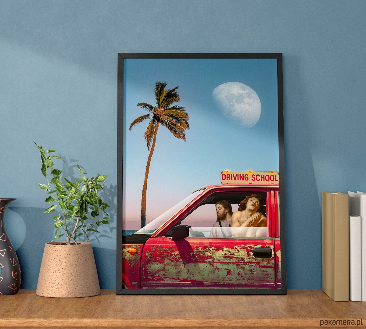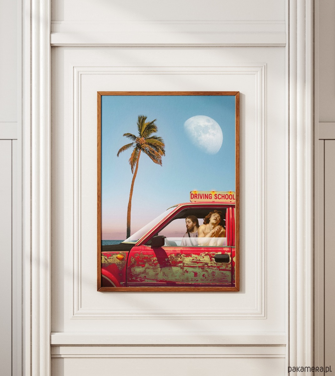 Gdy klasyczne malarstwo spotyka się z nowoczesnym absurdem — powstaje ten niezapomniany plakat. Daniel z obrazu Rubensa trafia do zniszczonego auta nauki jazdy na tle tropikalnej plaży, stając przed zupełnie nowym rodzajem próby. Ta praca łączy w sobie pop‑surrealizm, vintage’ową estetykę i ironiczny humor. Idealna do odważnych wnętrz i dla tych, którzy lubią sztukę z przymrużeniem oka. Świetnie sprawdzi się w salonie, pracowni lub jako prezent dla miłośnika sztuki i dobrej zabawy.