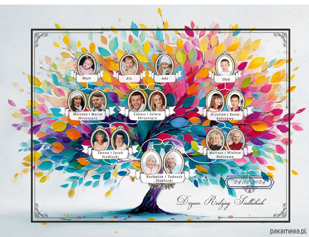 Możliwość dodania portretu dla każdego członka rodziny do 4 pokolenia (maksymalna ilość 22 osób )