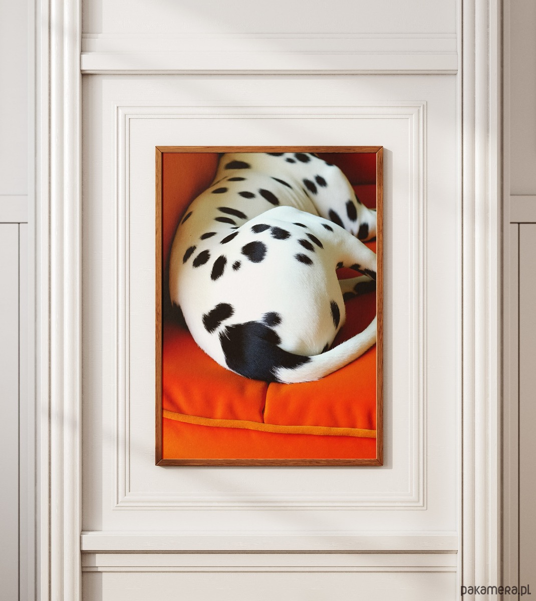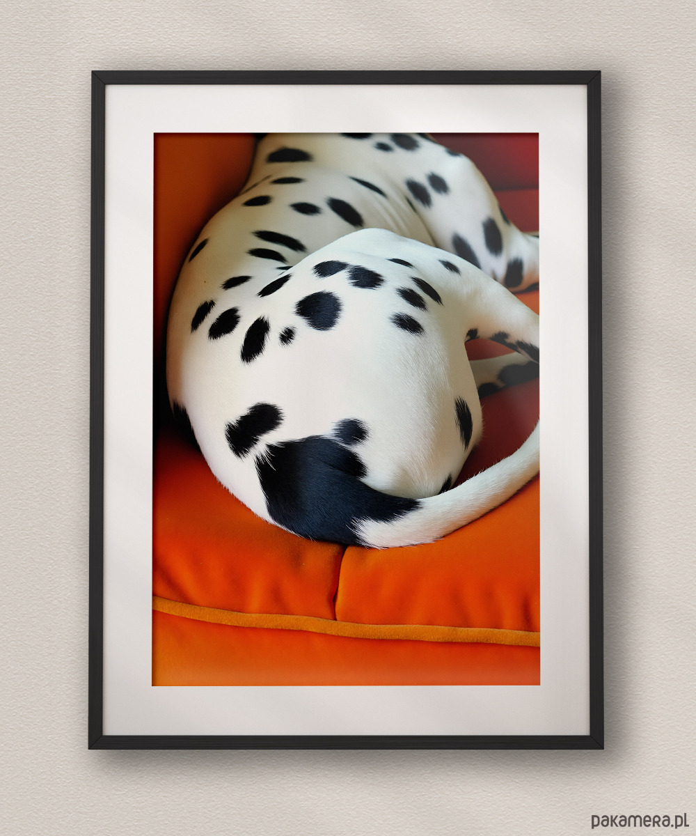 Wnieś odrobinę surrealizmu i humoru do swojego wnętrza. Ten unikalny wydruk artystyczny przedstawia dalmatyńczyka w nieoczywistej, niemal abstrakcyjnej kompozycji na tle głębokiego, soczystego oranżu. Gra świateł i cieni oraz odważna kolorystyka sprawiają, że plakat staje się głównym punktem każdego pomieszczenia – od nowoczesnego salonu po kreatywne biuro.