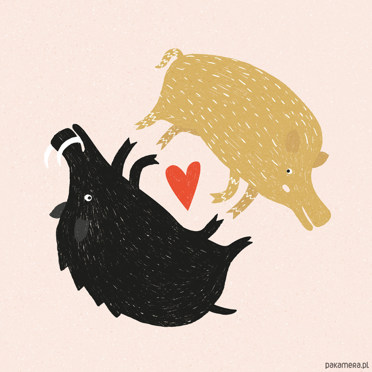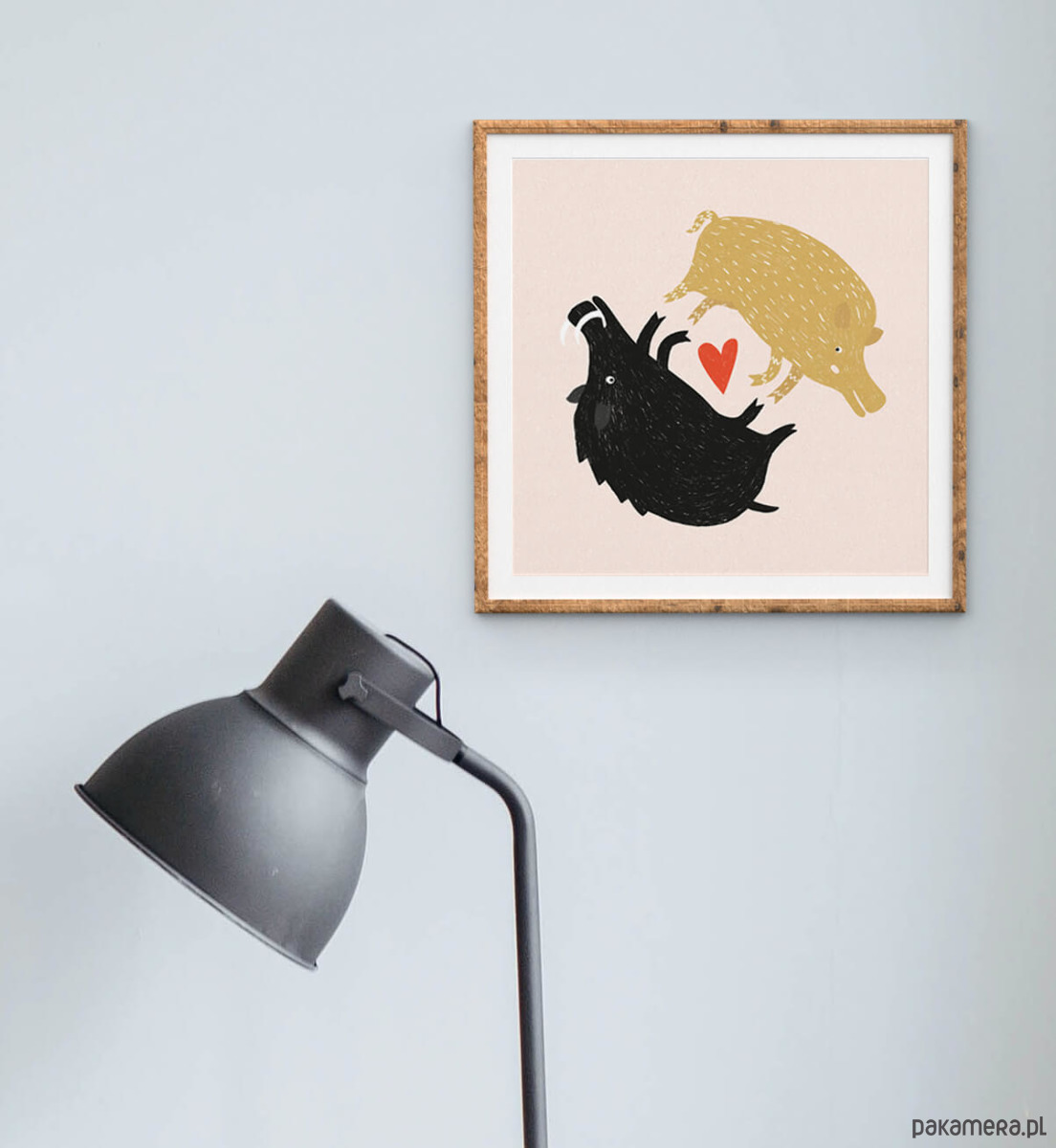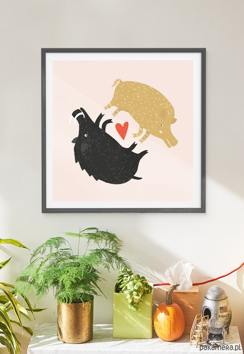 Kwadratowy plakat z parą dzików, doskonały dla każdego, kto chce wyrazić swoje uczucia w nietypowy sposób.