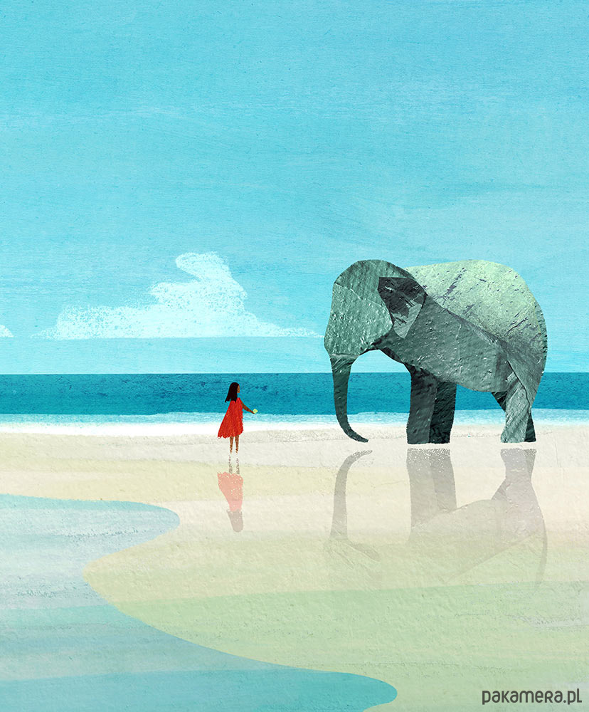 Plakat Egzotyczne wakacje - lazurowa plaża ze słoniem