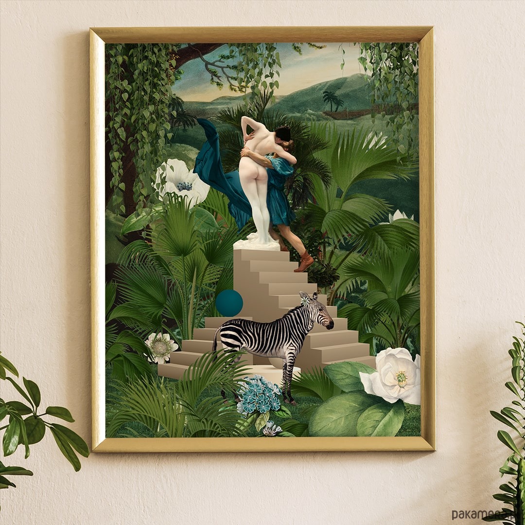 Kolaż "Euforia" opowiadający o odrywaniu się od ziemi i towarzyszących emocjach. Wybuch energii zamknięty w naszych ciałach. Urokliwa zieleń została zewstawiona z elementami ciemnego turkusu i bieli.