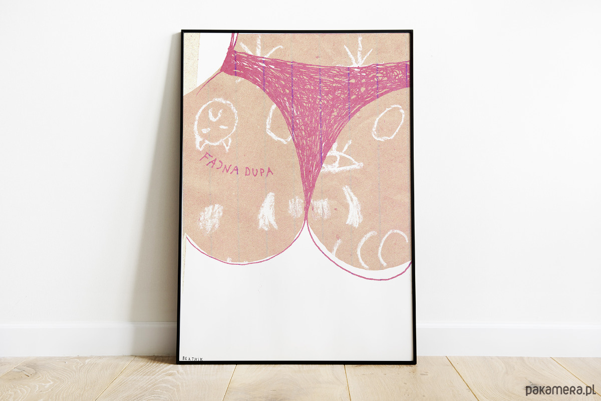 Plakat FAJNA DUPA różowa grafika erotyka dla dziewczyny przyjaciółki
