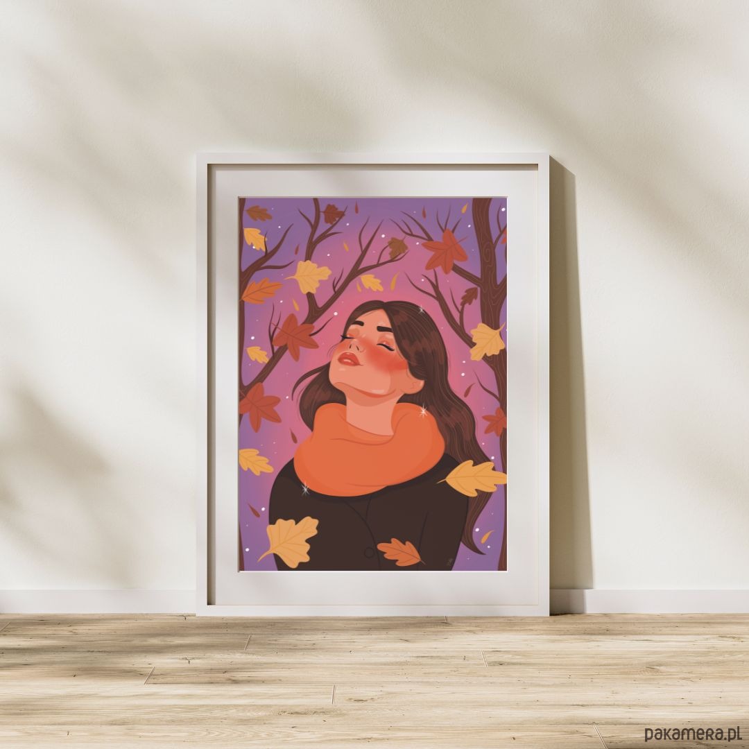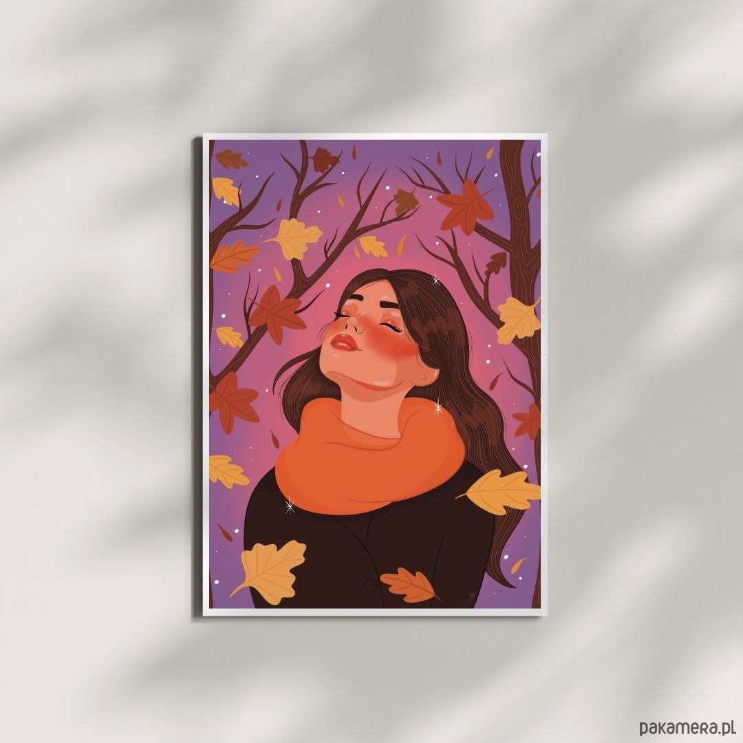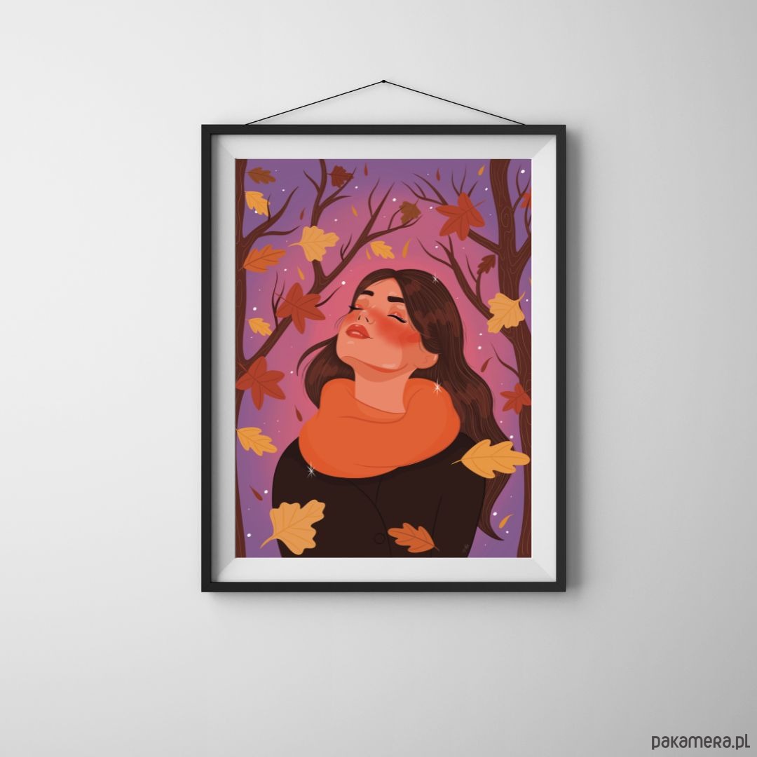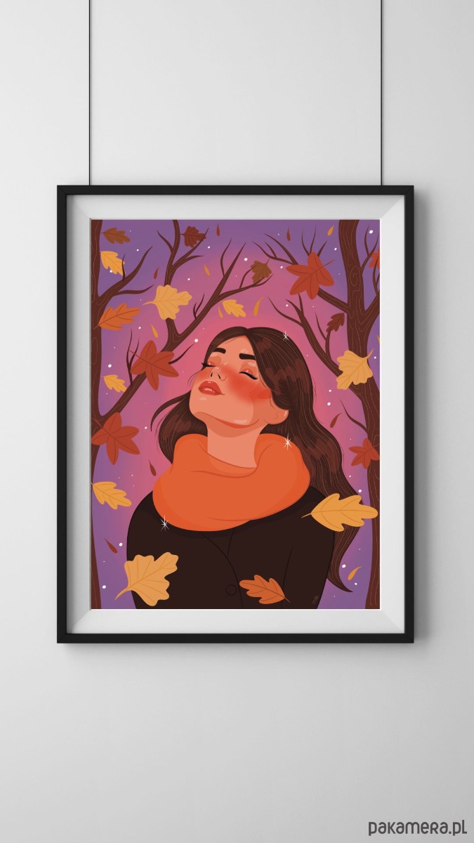 Autorska ilustracja pt. "Fall Walk". Idealna jako ozdoba na nadchodzącą jesień! Zapraszam do zakupu!