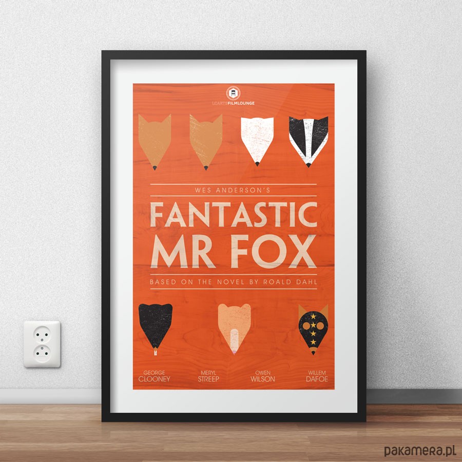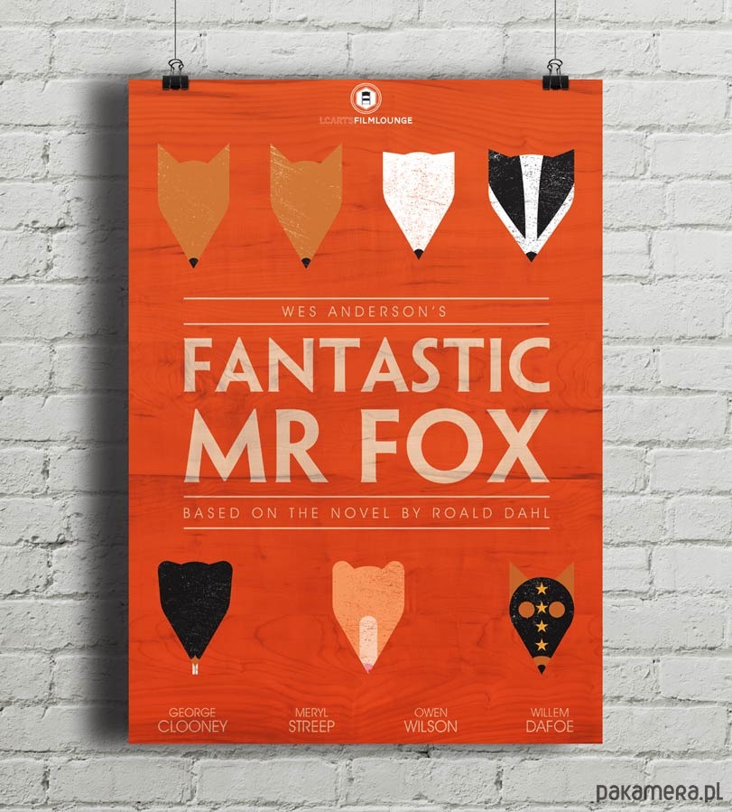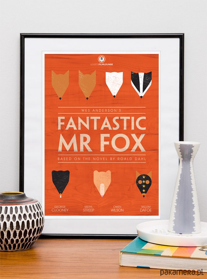 Plakat z autorską grafiką inspirowaną filmem Fantastyczny Pan Lis (Fantastic Mr. Fox) w reżyserii Wesa Andersona.