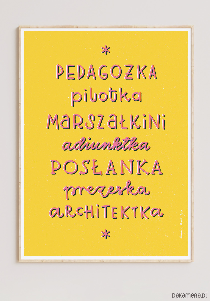 Pedagożka, pilotka, marszałkini, adiunkta, posłanka, prezeska i architektką mogą teraz każdego dnia patrzeć na Ciebie z Twojej ściany.