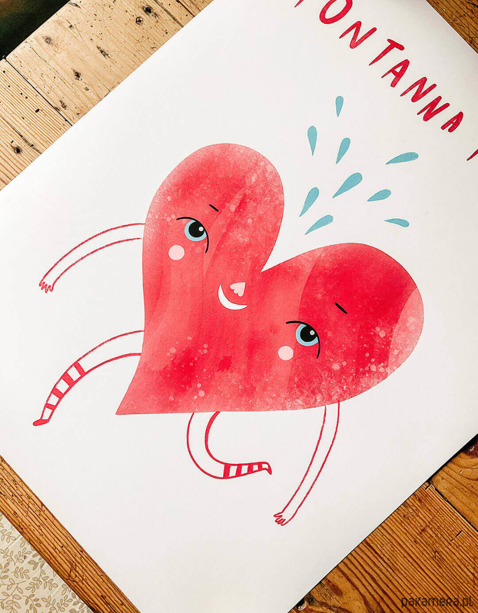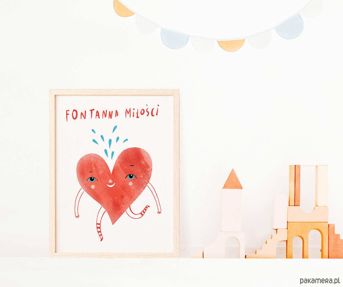 – plakat z napisem „Fontanna miłości” i autorską grafiką wykonaną w technice tradycyjnej (akwarela) i cyfrowej