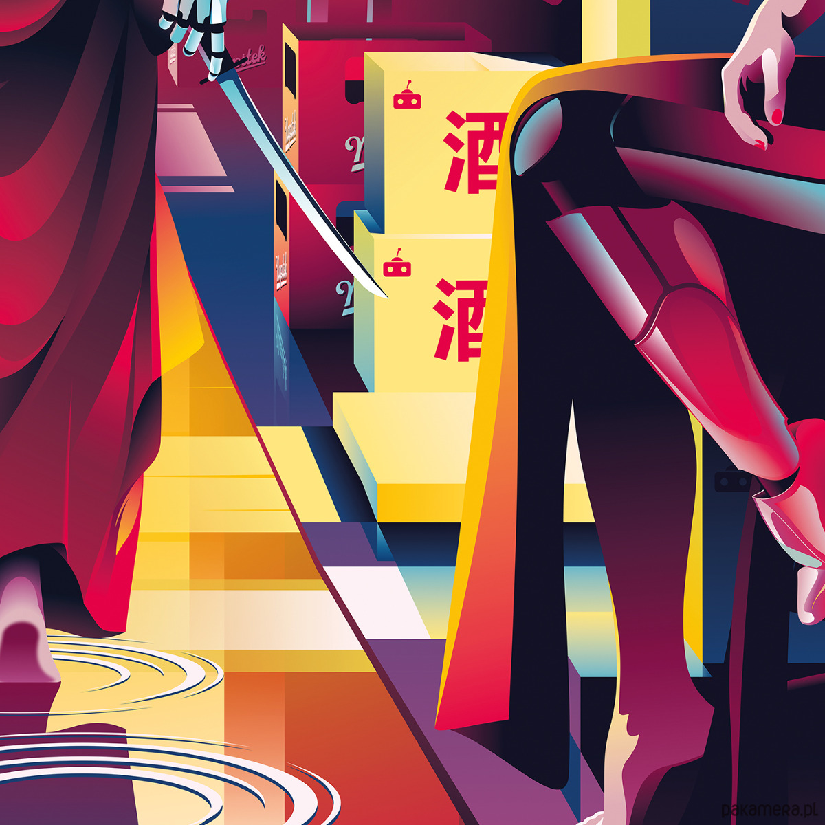 Centralnym motywem ilustracji jest tajemnicza postać kobiety-androida kroczącej wąską uliczką wypełnioną migoczącymi neonami. Kim jest? Skąd przyszła? I komu wymierza tytułową zemstę? Ten plakat zostawia przestrzeń na własną interpretację i buduje klimat niczym kadr z futurystycznego filmu.