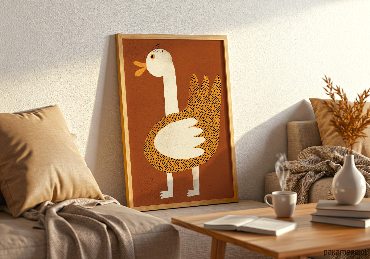 Cyfrowy wydruk autorskiej ilustracji. Zaprojektowany i wydrukowany w Polsce. Plakat z retro charakterem.