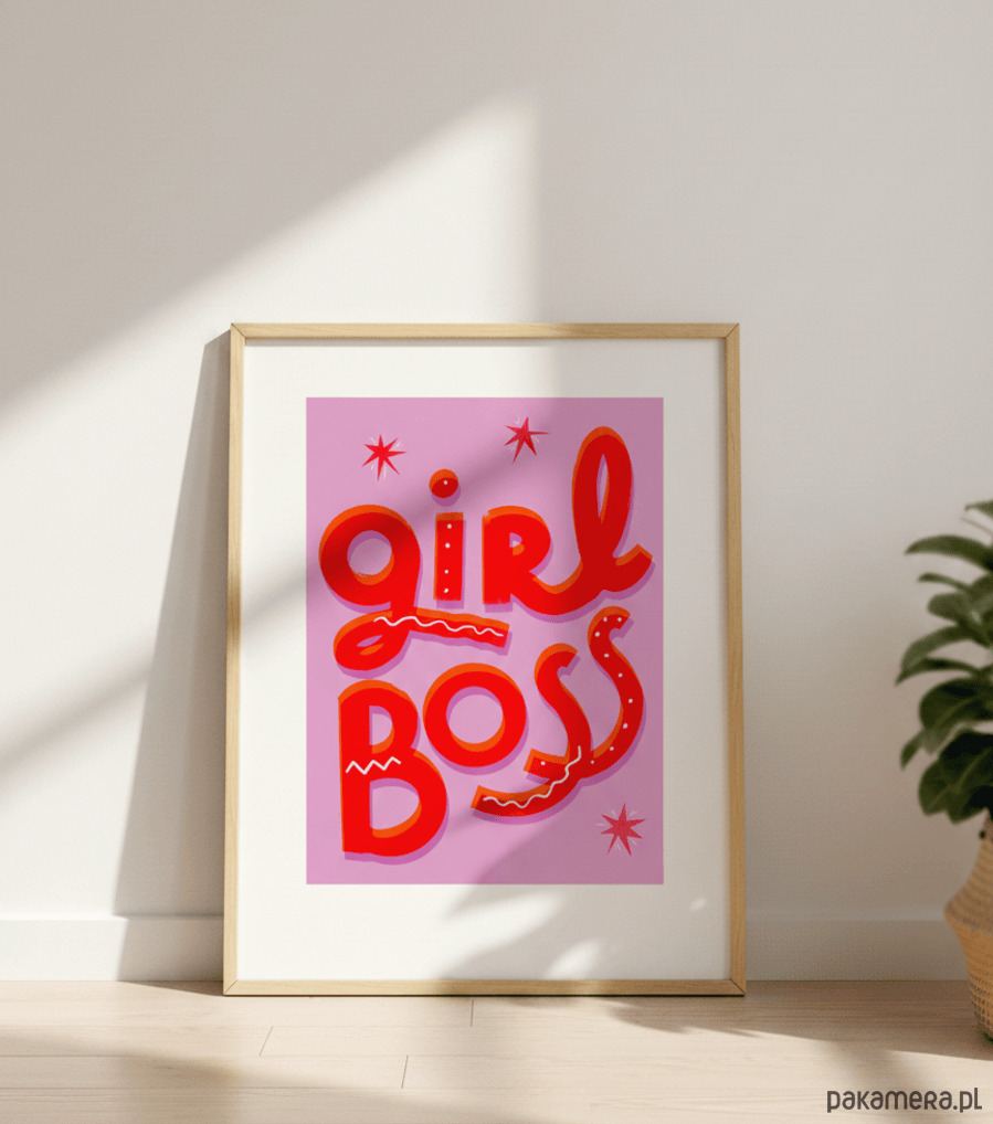 Plakat „Girlboss” projektu Justyny Frączek to połączenie minimalizmu, elegancji i kobiecej siły. Subtelny, nasycony kolor i matowe wykończenie nadają mu wyjątkowy charakter. Druk wykonany jest na wysokiej jakości papierze o gramaturze 230 g, który jest przyjemny w dotyku i pięknie prezentuje się w każdej przestrzeni.