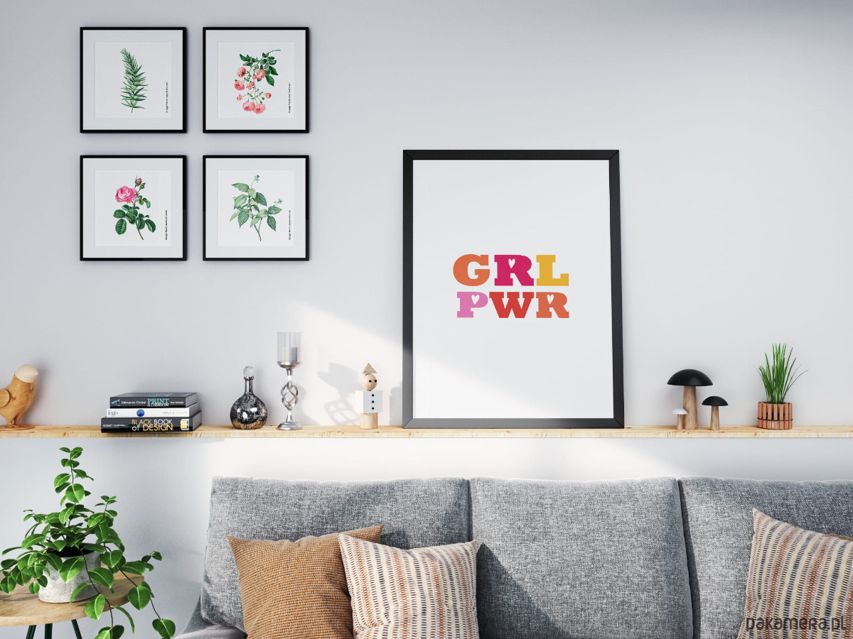 Plakat z dziewczyńską mocą i przesłaniem GIRL POWER.