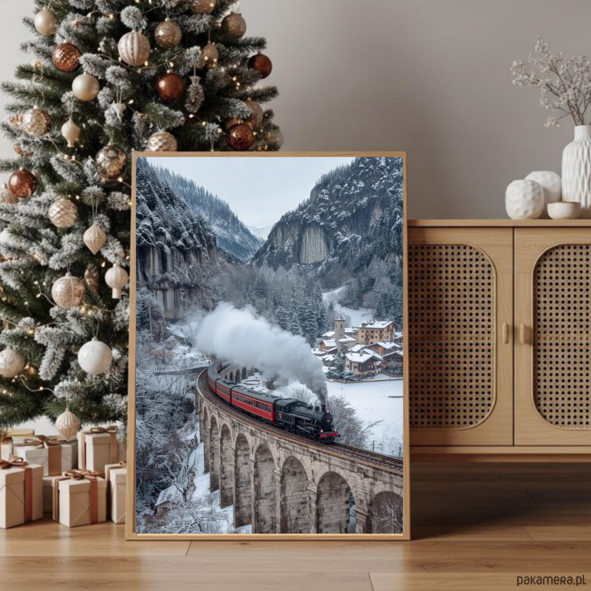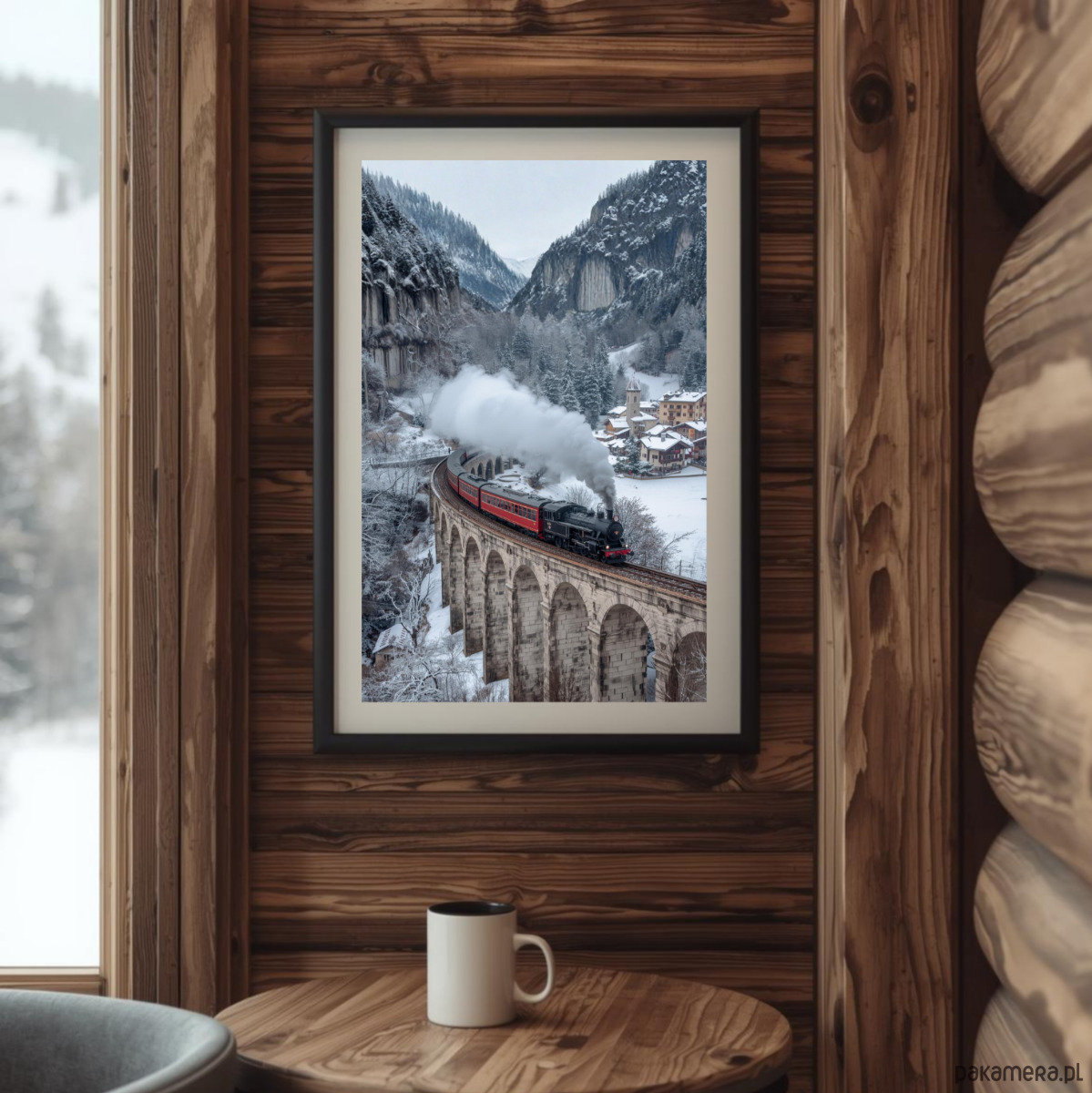 PLAKAT Góry zdjęcie pociąg górski krajobraz zimowy
