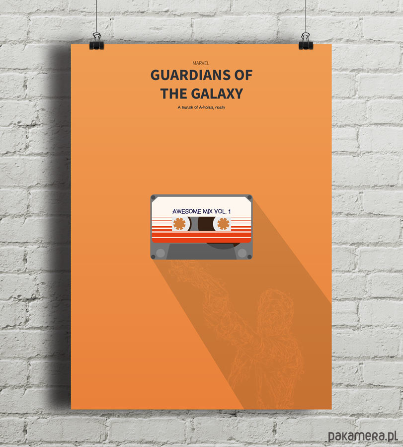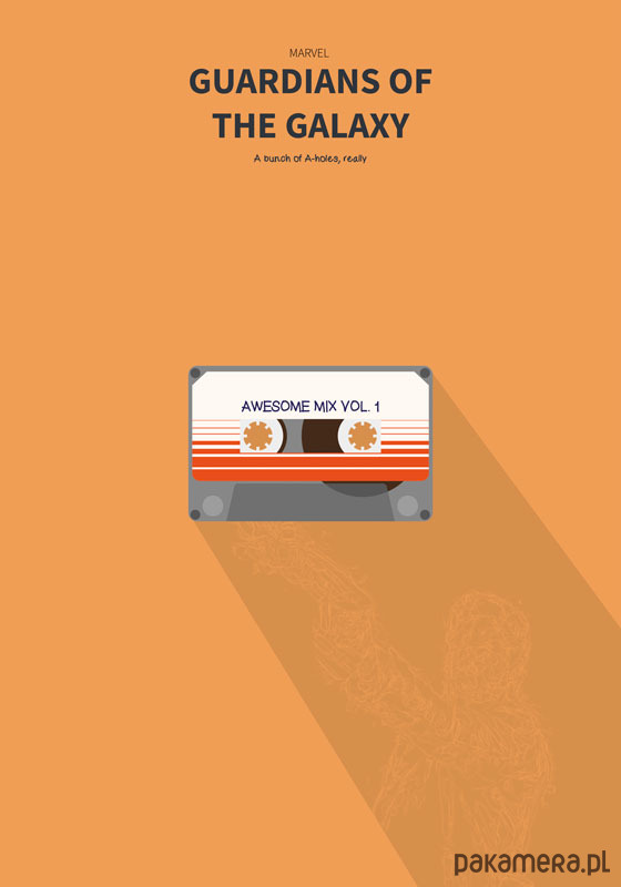 Plakat z autorską grafiką inspirowaną filmem Strażnicy Galaktyki (Guardians of the Galaxy) w reżyserii Jamesa Gunna.