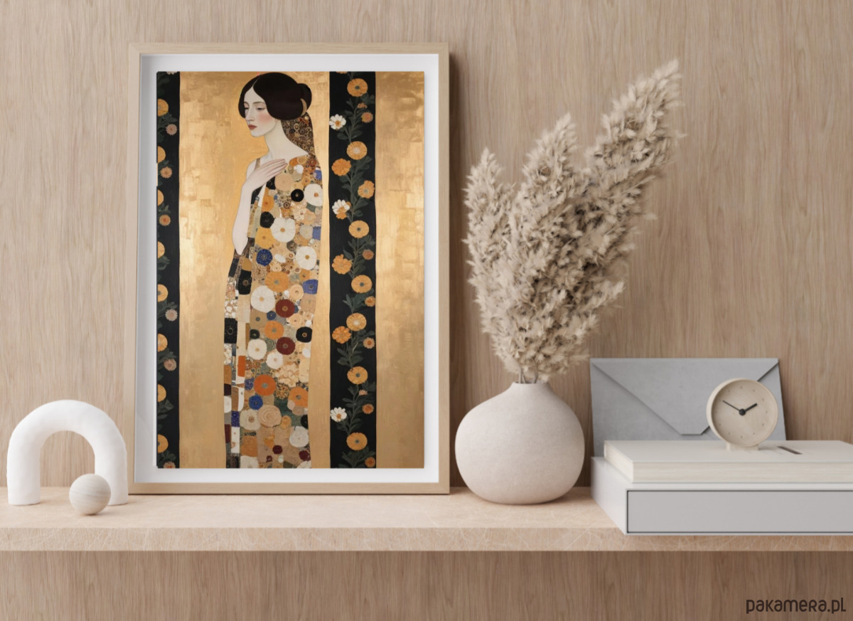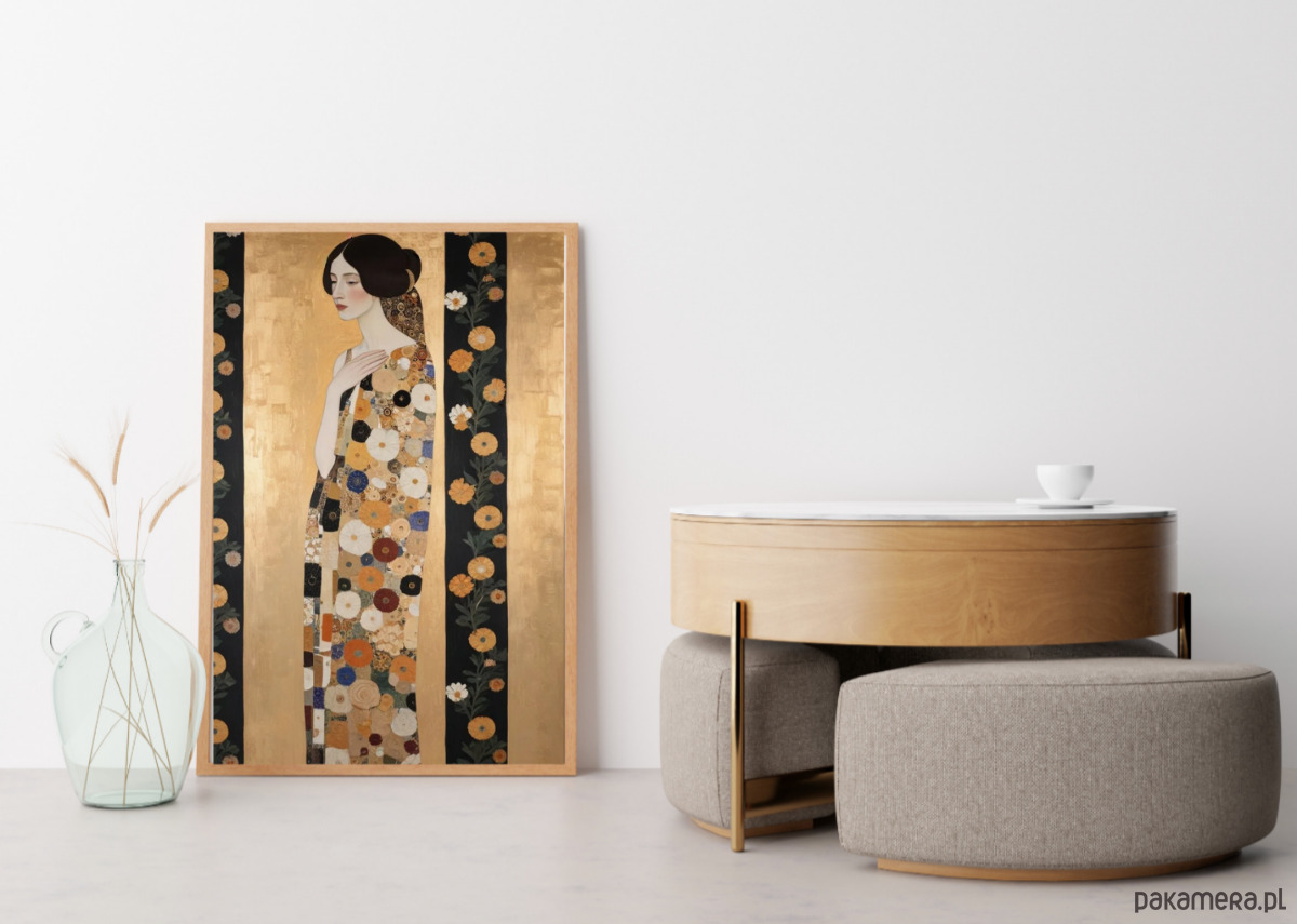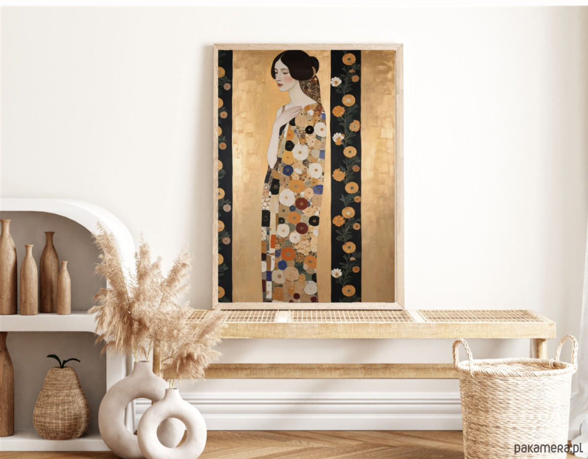 PLAKAT Gustav Klimt, portret obraz kobieta kwiaty