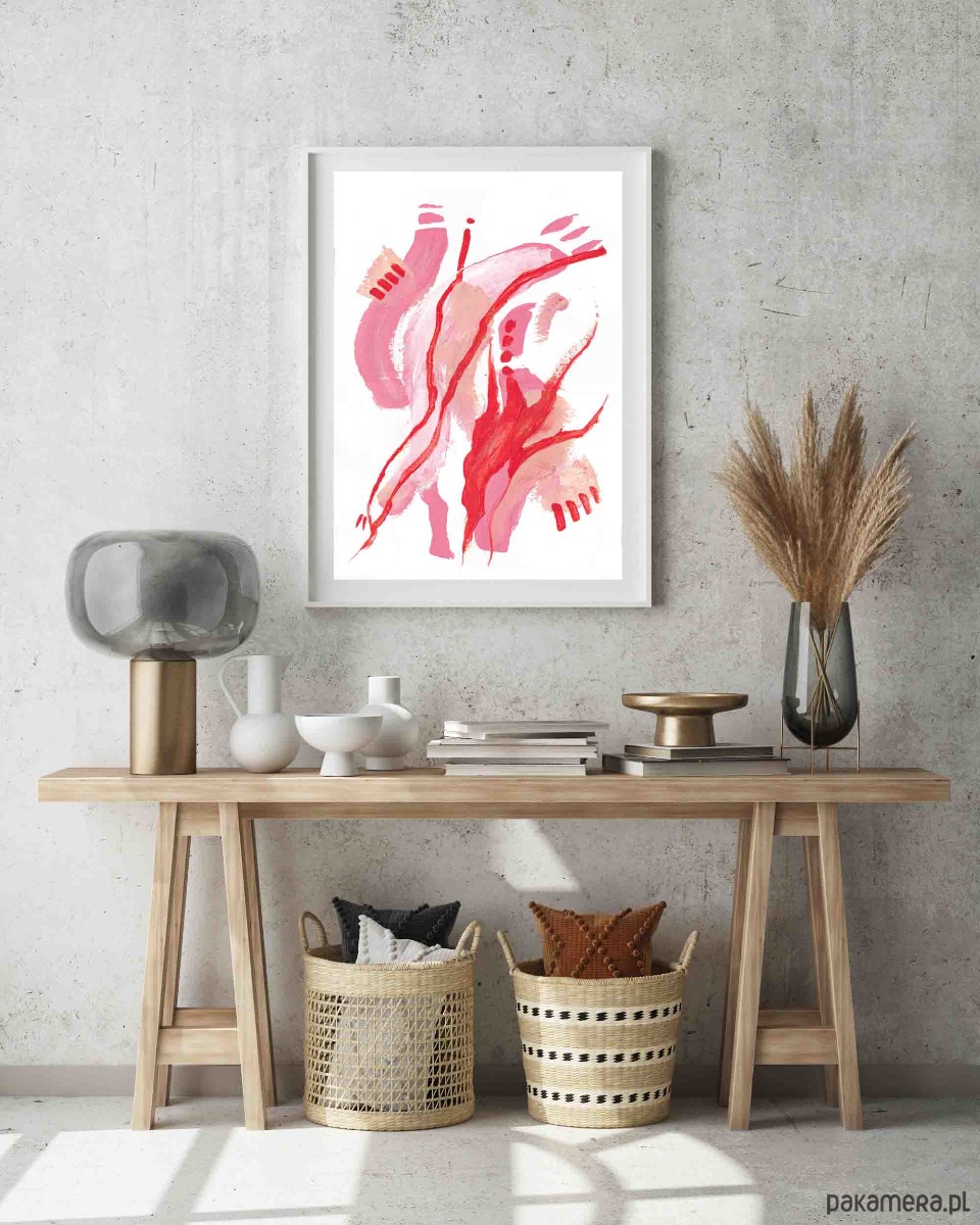 Cudowny wydruk z oryginału: Ekspresjonizm abstrakcyjny namalowany techniką mieszaną akryl, pastel, ołówek. Farba grubo kładziona na papierze Hahnemühle. Wyraziste kolory.to idealne dopełnienie minimalistycznego wnętrza.