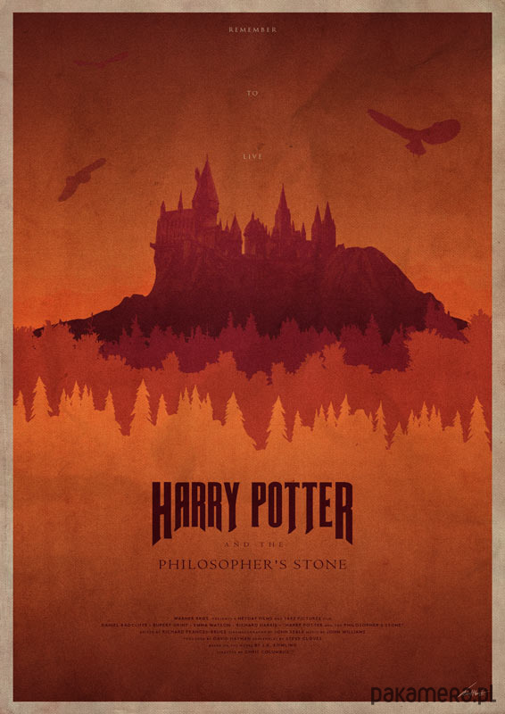 Plakat z autorską grafiką inspirowaną filmem "Harry Potter i Kamień Filozoficzny" (Harry Potter And The Philosopher's Stone), reż. Chris Columbus.