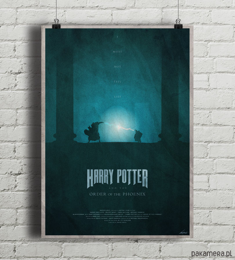 Plakat z autorską grafiką inspirowaną filmem "Harry Potter i Zakon Feniksa" (Harry Potter And The Order Of The Phoenix), reż. David Yates.