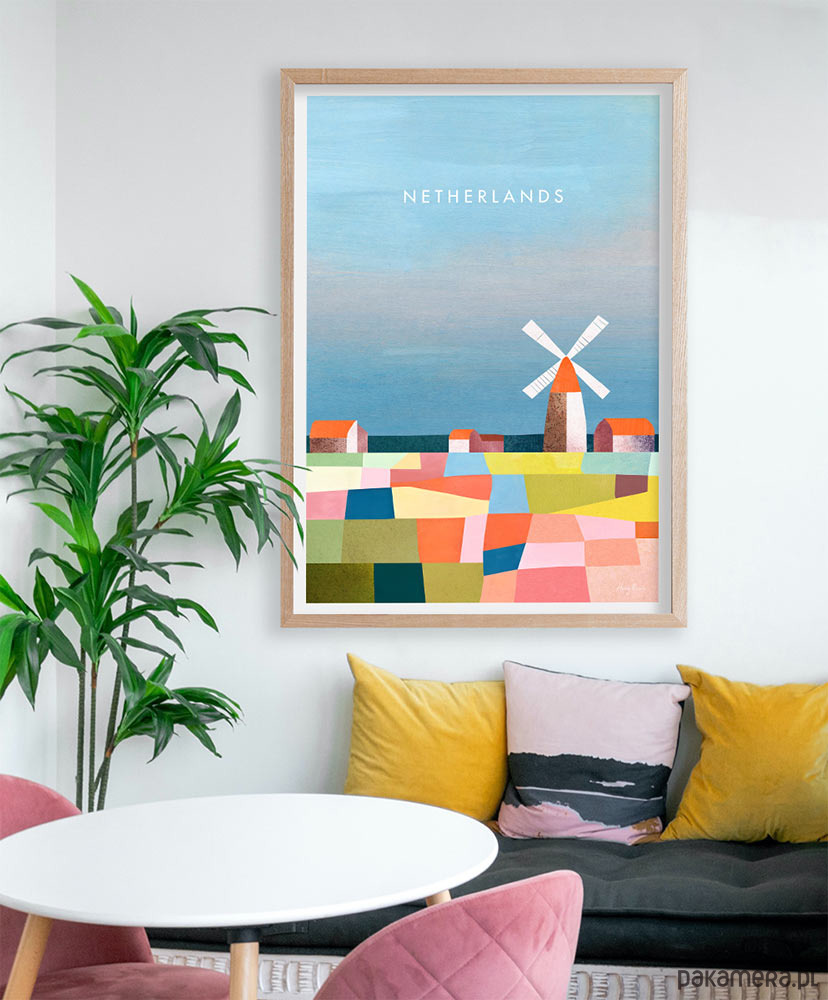 Plakat Holandia - pola kwiatowe to kolorowa grafika, która podkreśli charakter każdego wnętrza. Sielski obraz przełamany został nowoczesnym stylem grafiki.