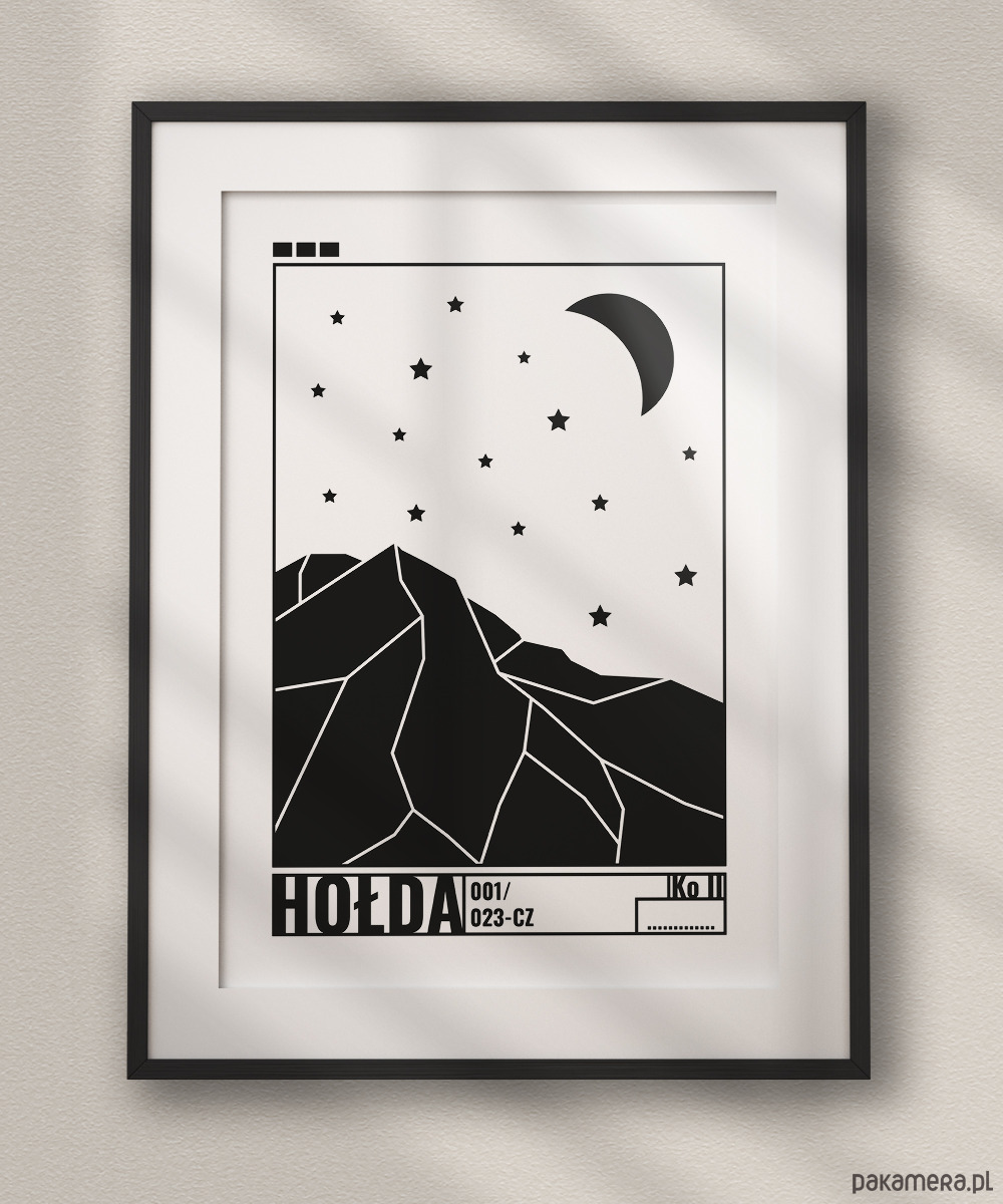 Minimalistyczny plakat z geometrycznym motywem hołdy węgla. Pod ilustracją znajduje się napis inspirowany dawnymi kartkami na węgiel. Zastosowane oznaczenie KO II (kostka II) odnosi się do klasy węgla kamiennego w dużych bryłach. To plakat idealny do nowoczesnych, industrialnych i loftowych wnętrz. Sprawdzi się w mieszkaniach osób związanych ze Śląskiem, miłośników historii górnictwa, a także u kolekcjonerów minimalistycznych grafik z charakterem.