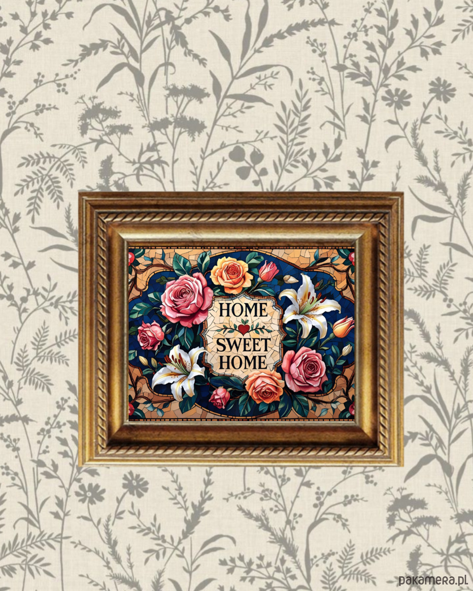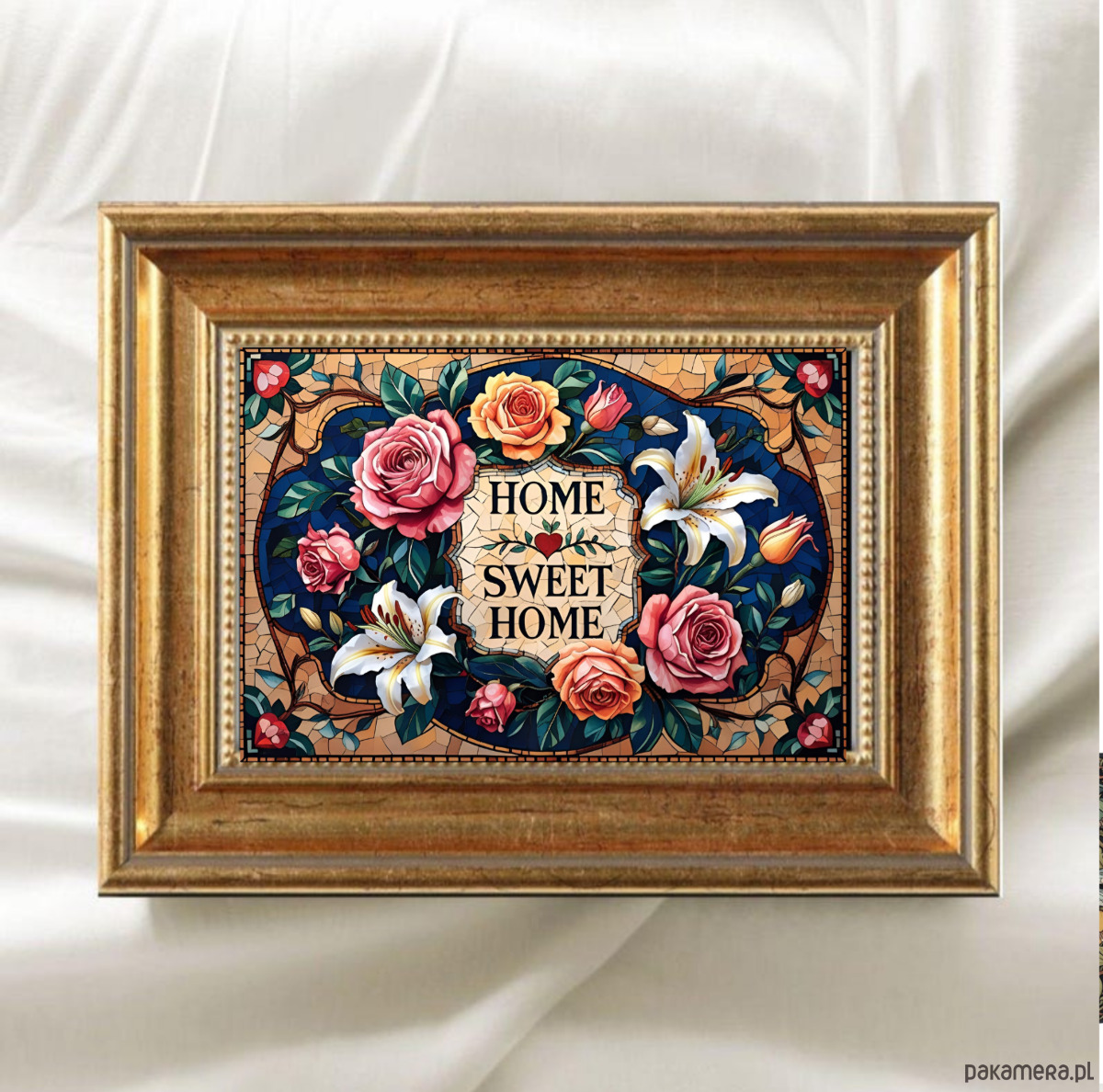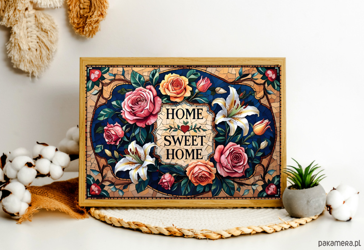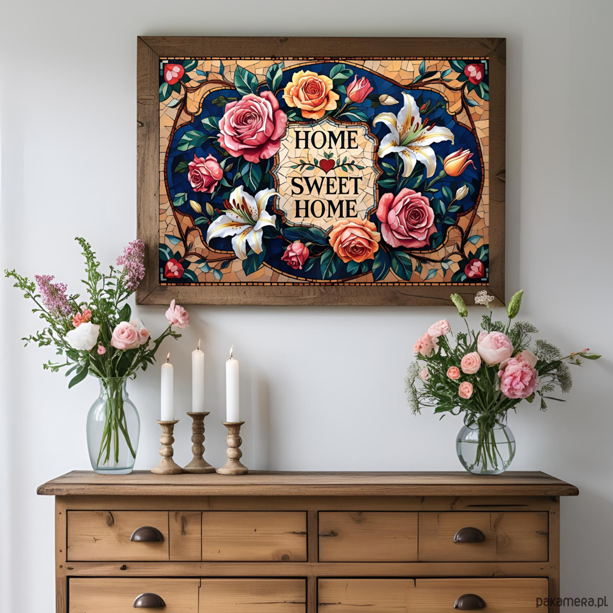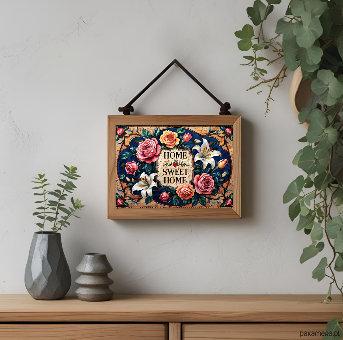 PLAKAT home sweet home dekoracja kwiaty prezent