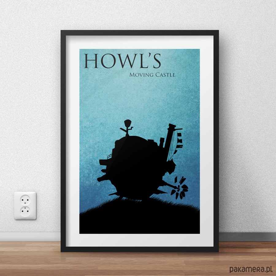 Plakat z autorską grafiką inspirowaną filmem Howl's Moving Castle (Ruchomy zamek Hauru) w reżyserii Hayao Miyazakiego.