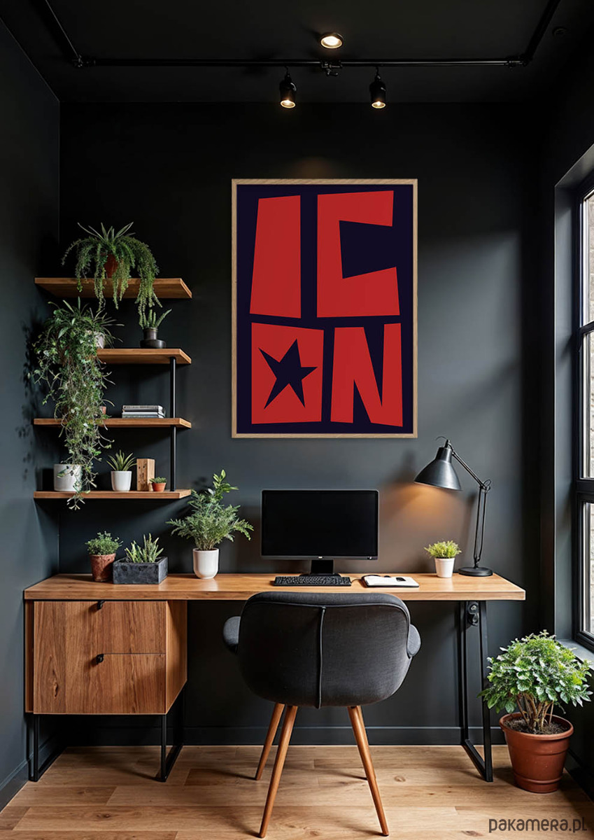 Minimalistyczna forma liter oraz symbol gwiazdy sprawiają, że praca jest jednocześnie odważna, stylowa i dekoracyjna. To idealny wybór dla osób ceniących nowoczesną sztukę, typografię i wyraziste akcenty we wnętrzach.