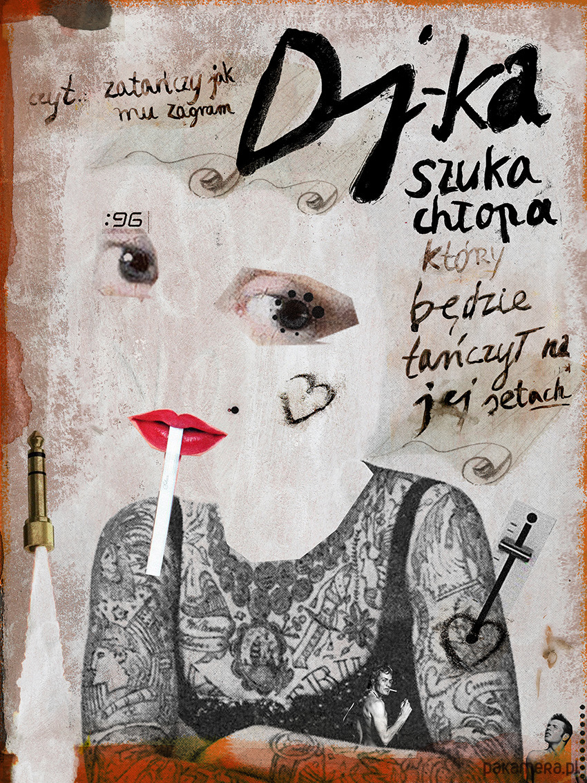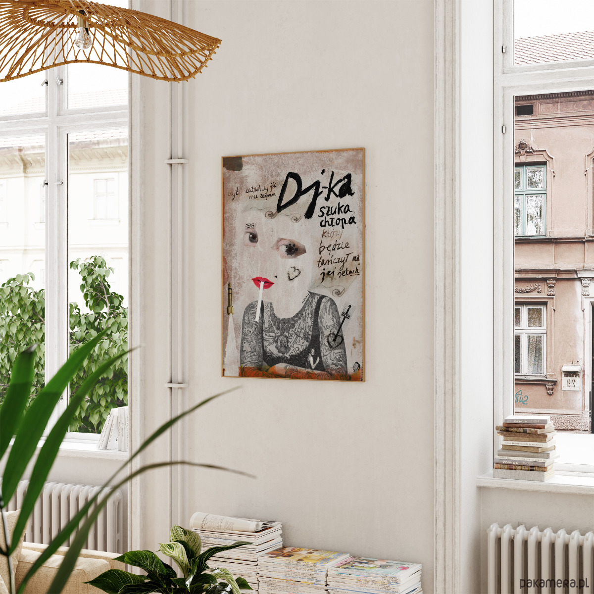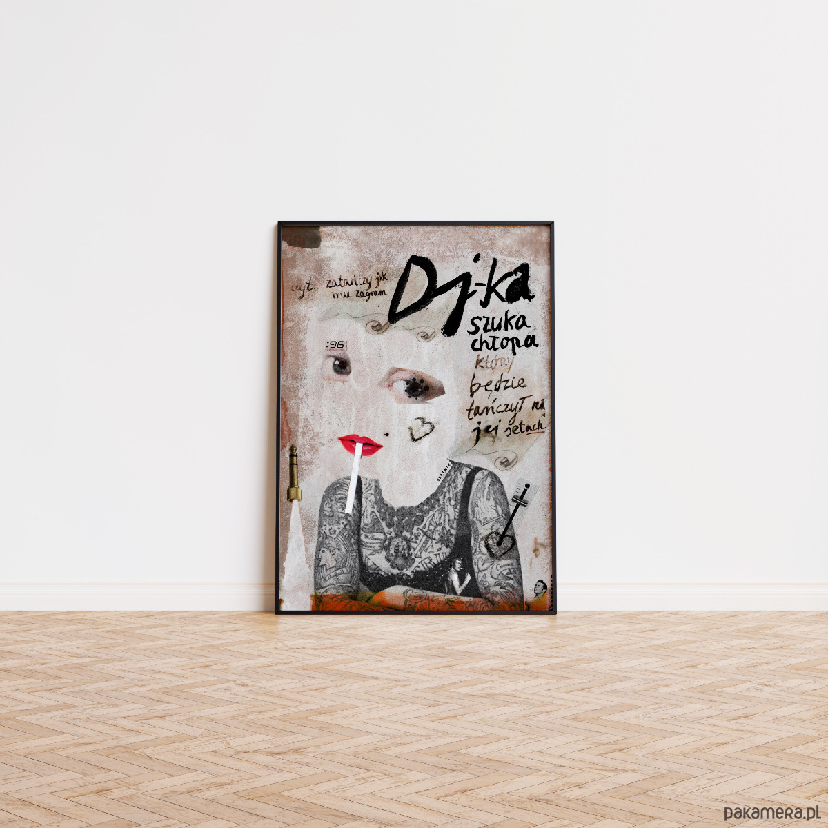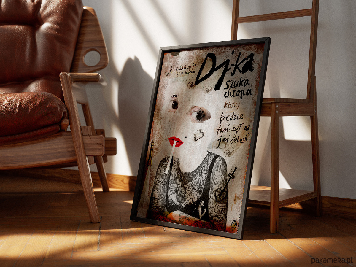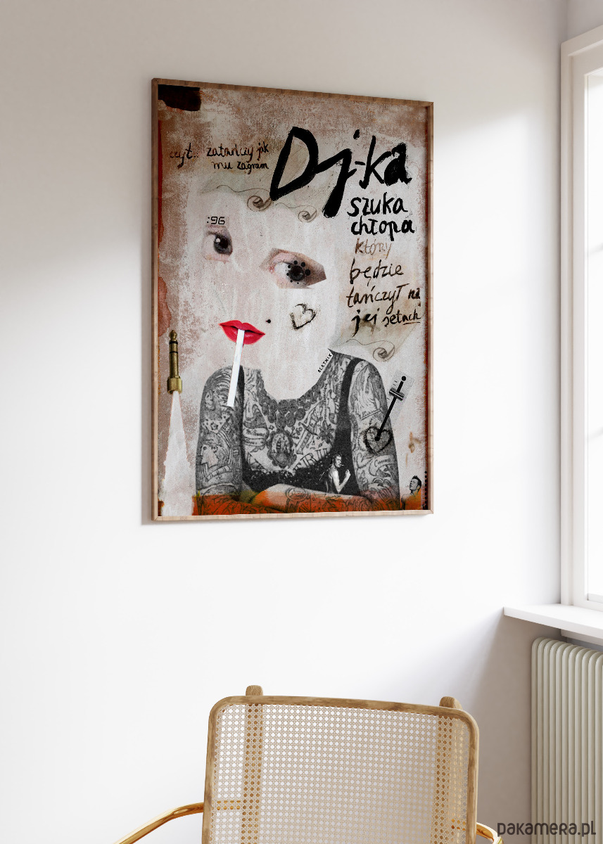 Plakat ILUSTRACJA DJ-ka muzyka techno rave urodziny impreza prezent dla niej