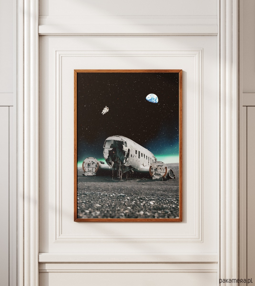 To grafika stworzona dla fanów sci-fi, minimalizmu i surowych, industrialnych klimatów. Świetnie sprawdzi się w nowoczesnych, surowych wnętrzach, loftach czy pokojach graczy, gdzie dominują chłodne barwy i technologia. To idealny wybór dla każdego, kto zamiast klasycznych widoków z podróży, szuka w sztuce klimatu rodem z „Interstellar” i chce mieć na ścianie coś, co łączy autentyczną historię z wizją kosmicznej samotności.
