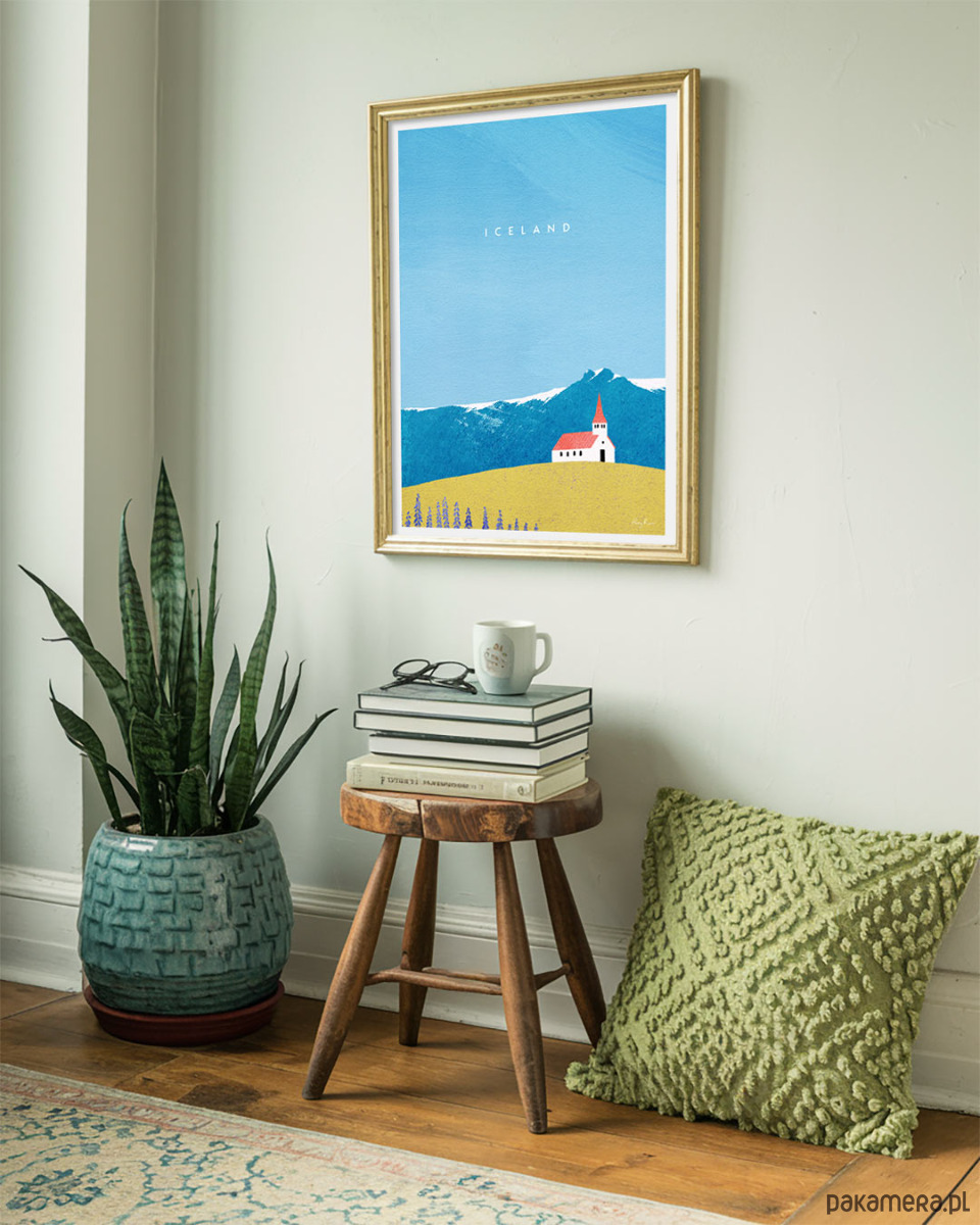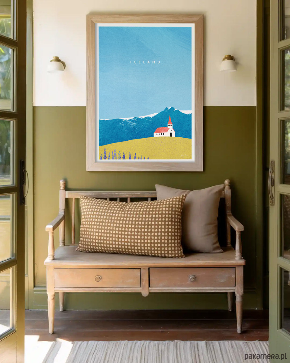 Północne regiony kojarzą się zwykle z surowym pięknem krajobrazu. Jednak w letnich miesiącach sytuacja całkowicie się odmienia i wszędzie gdzie okiem sięgnąć króluje zieleń i dzikie kwiaty. Plakat „Islandia - kościół Reyniskirkja z czerwonym dachem” przyłapuje wyspę w takim właśnie momencie letniej beztroski. Grafika idealnie sprawdzi się jako dekoracja domu wszystkich zakochanych w odkrywaniu północnych rubieży świata.